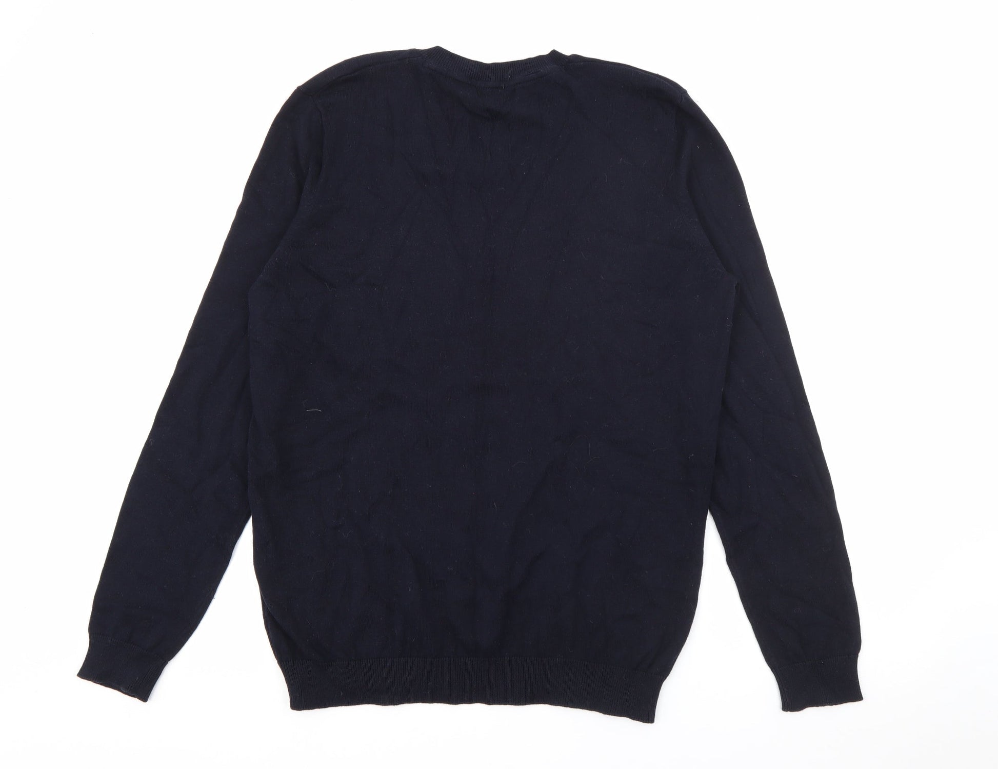 New Look Mens Blue V-Neck Cotton Pullover Jumper Size L