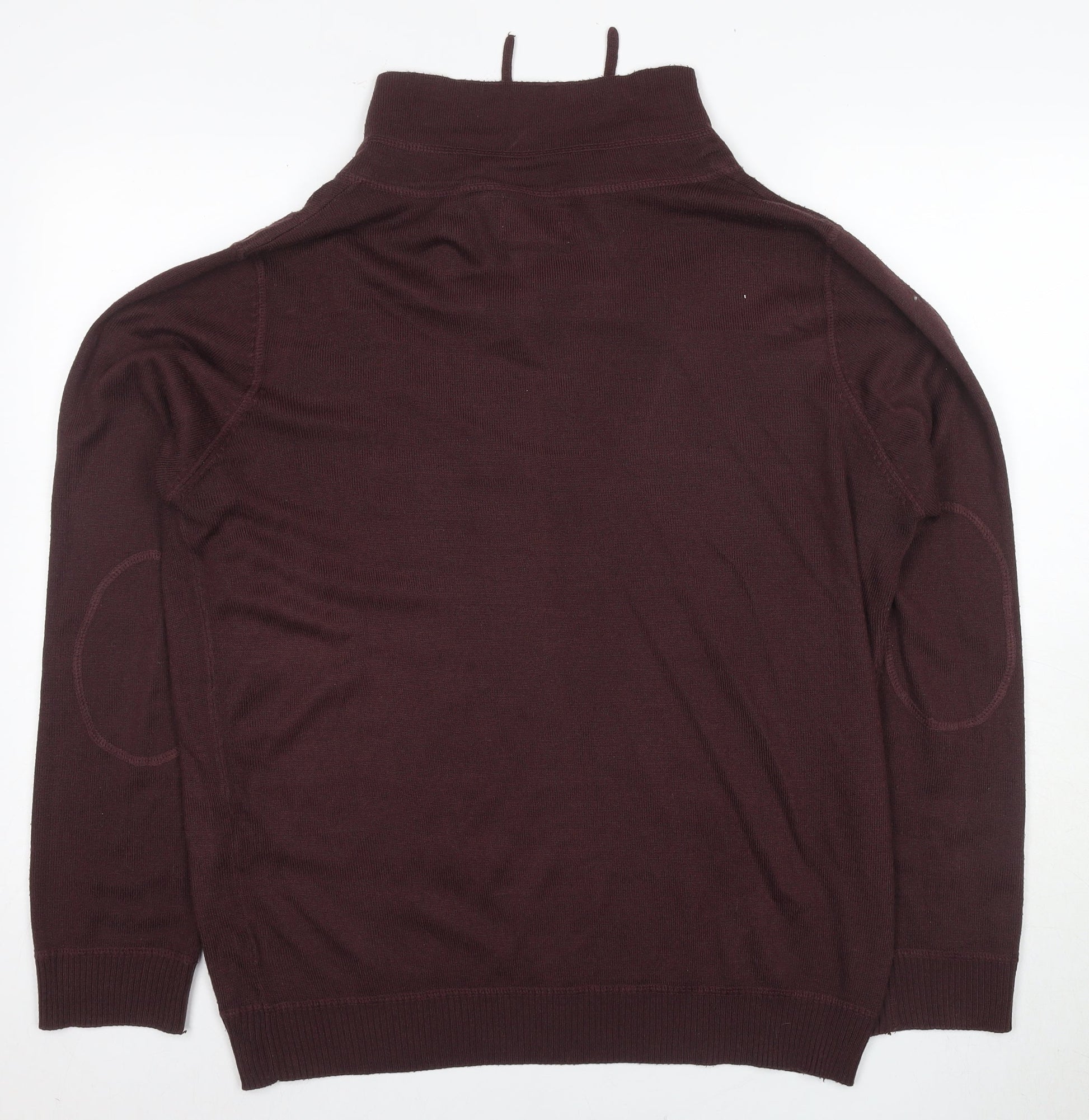 New Look Men's Brown Henley Jumper L, High Neck, Button Accent