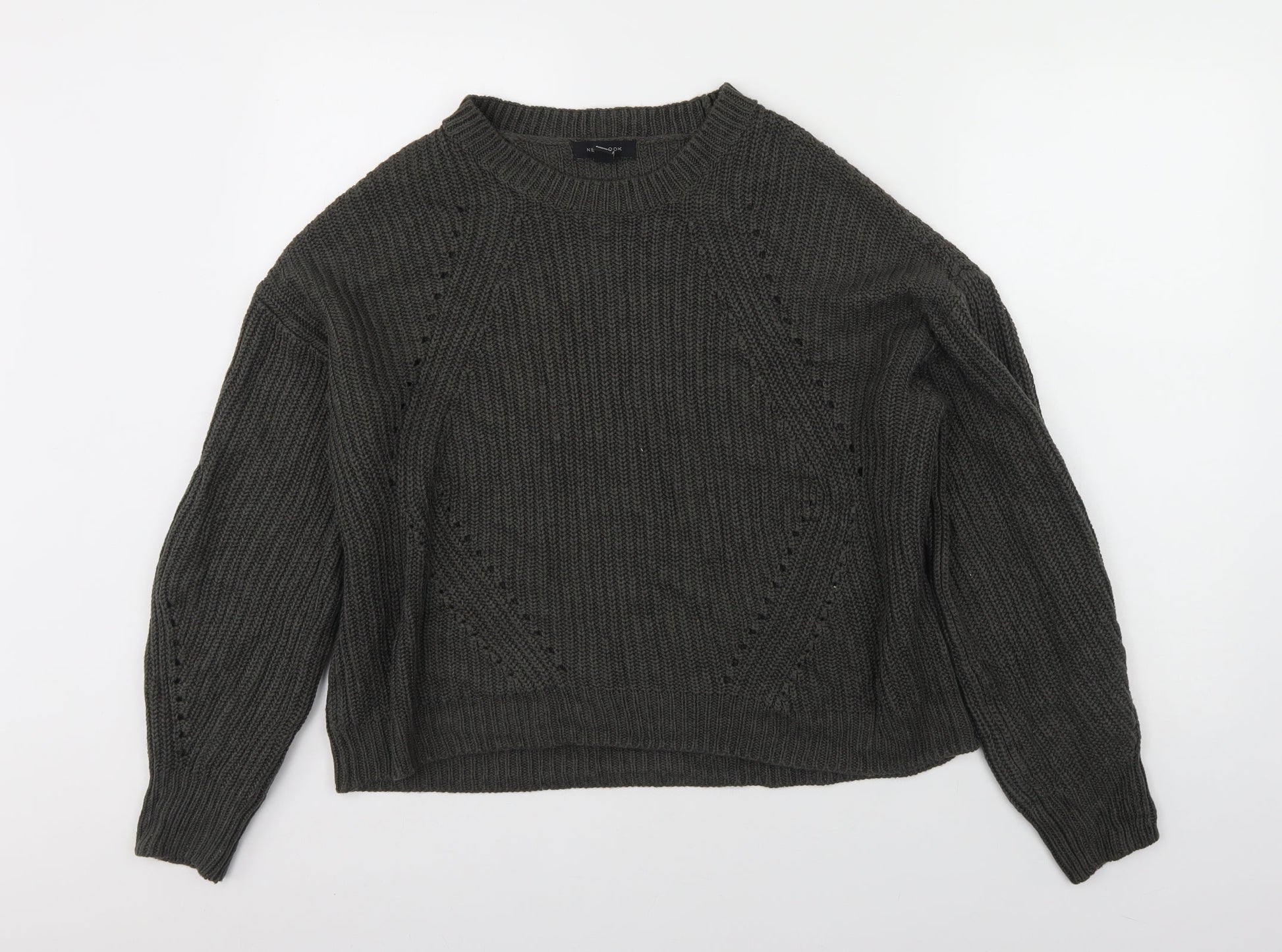 New Look Mens Green Round Neck Acrylic Pullover Jumper Size M