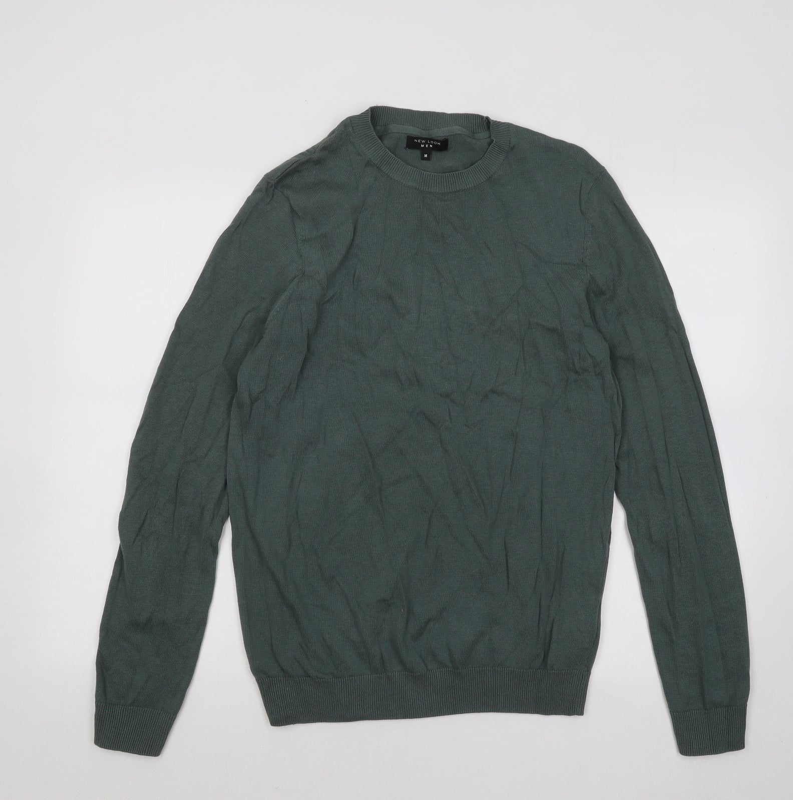 New Look Mens Green Round Neck Cotton Pullover Jumper Size M