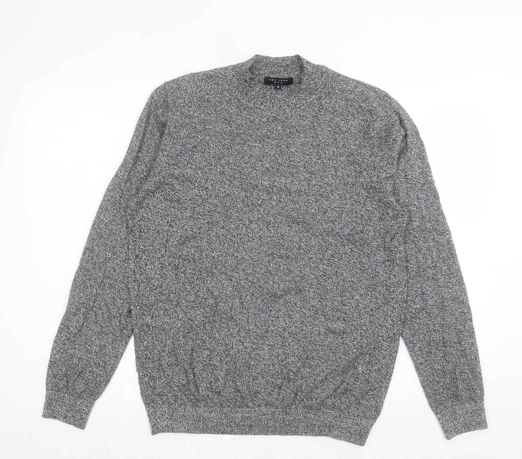 New Look Mens Grey High Neck Cotton Pullover Jumper Size M
