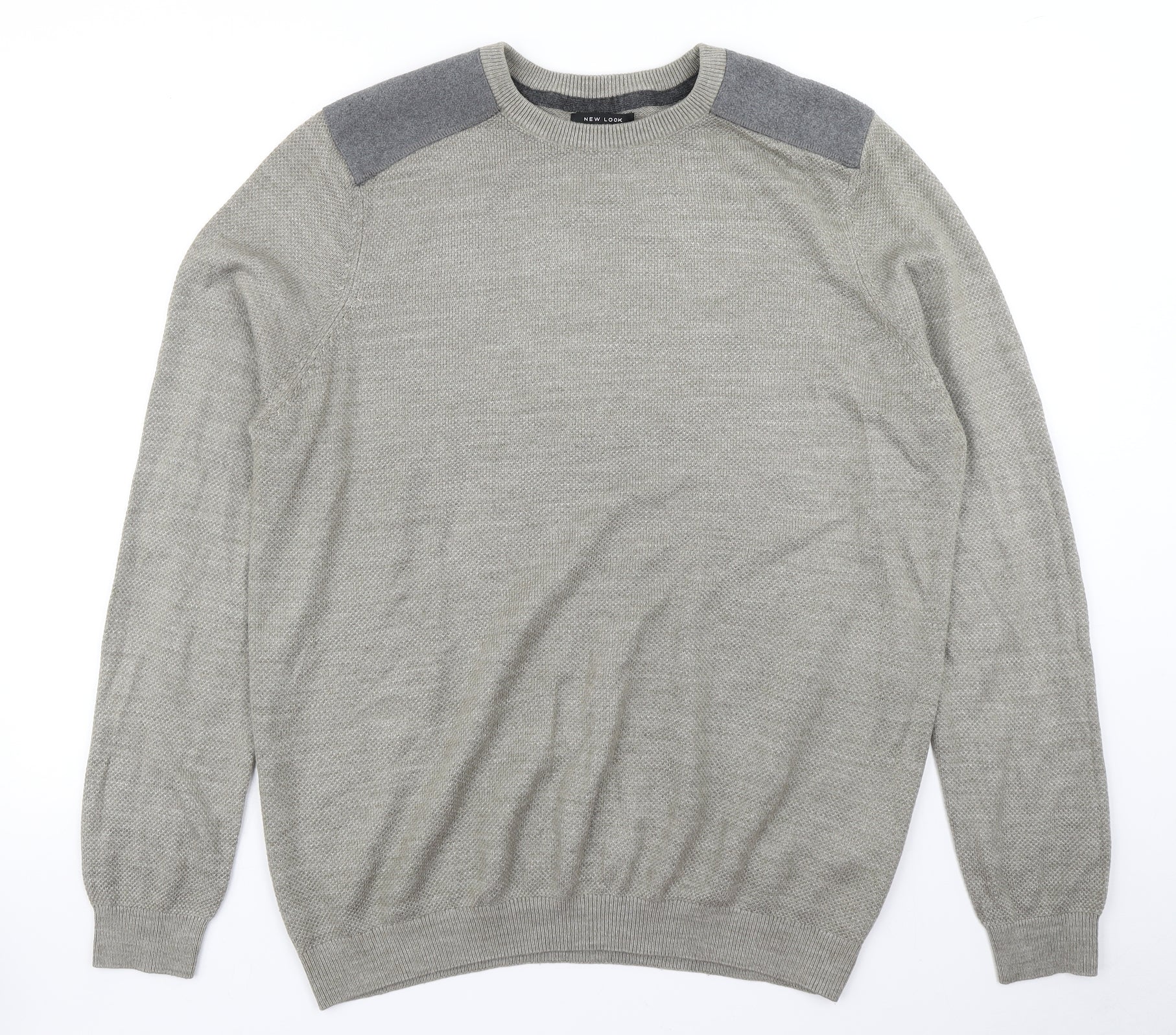New Look Mens Grey Knit Pullover Jumper Size XL