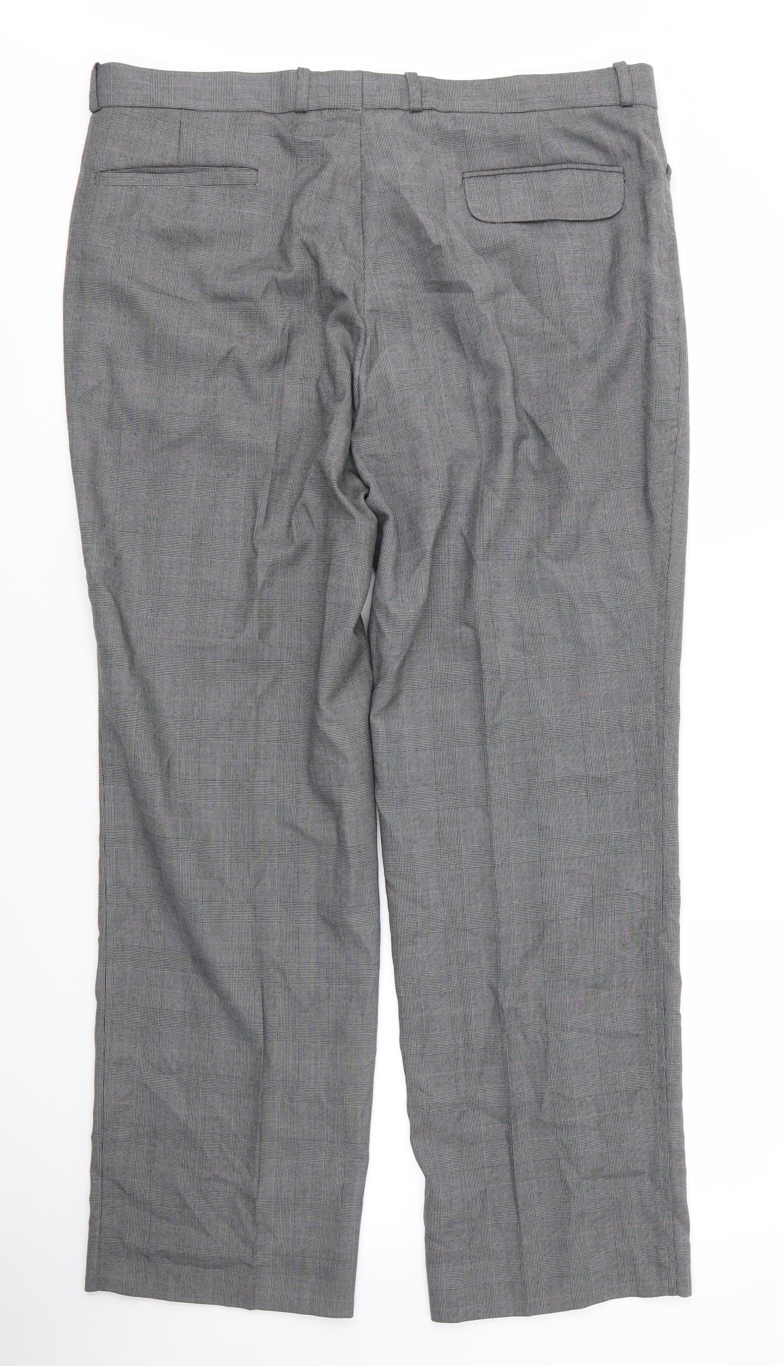 New Look Mens Grey Plaid Viscose Trousers Size 36 in L28 in Regular Zip