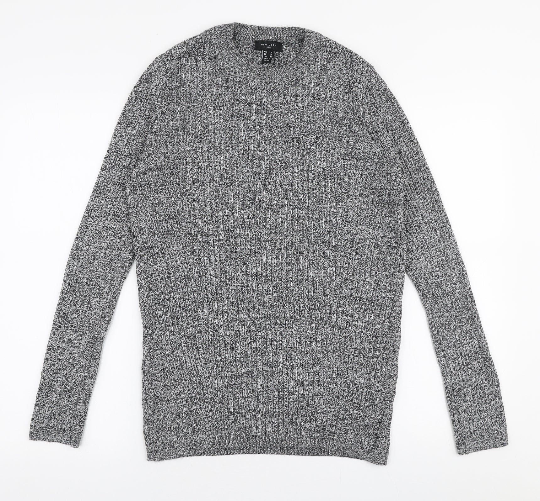 New Look Mens Grey Round Neck Acrylic Pullover Jumper Size M