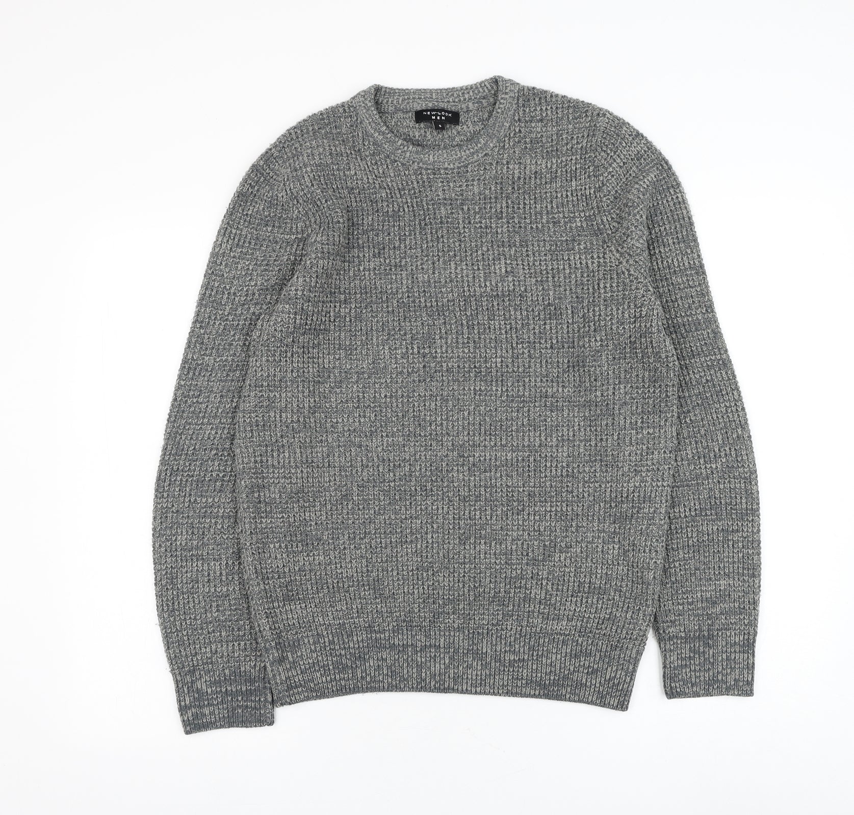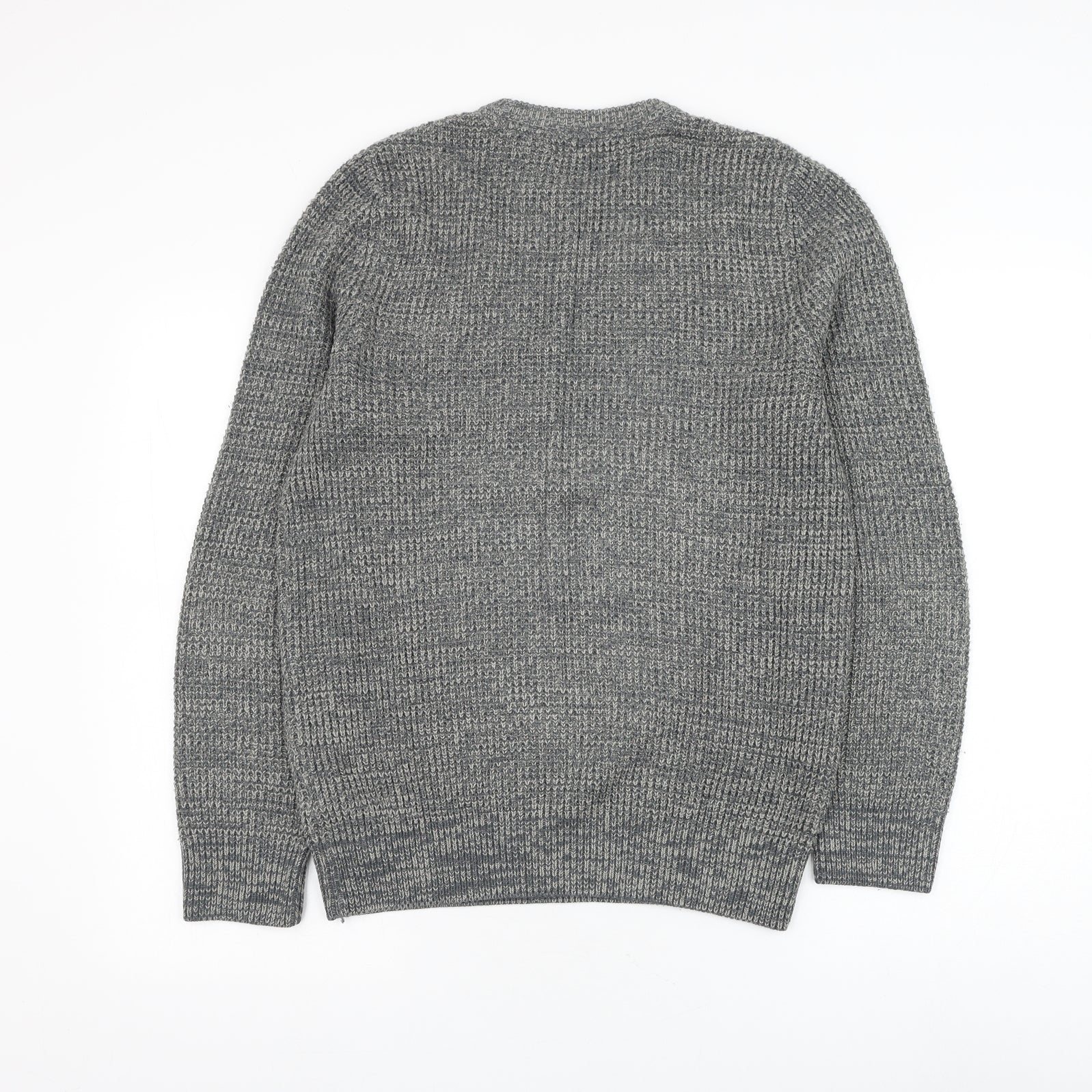 New Look Mens Grey Round Neck Acrylic Pullover Jumper Size S