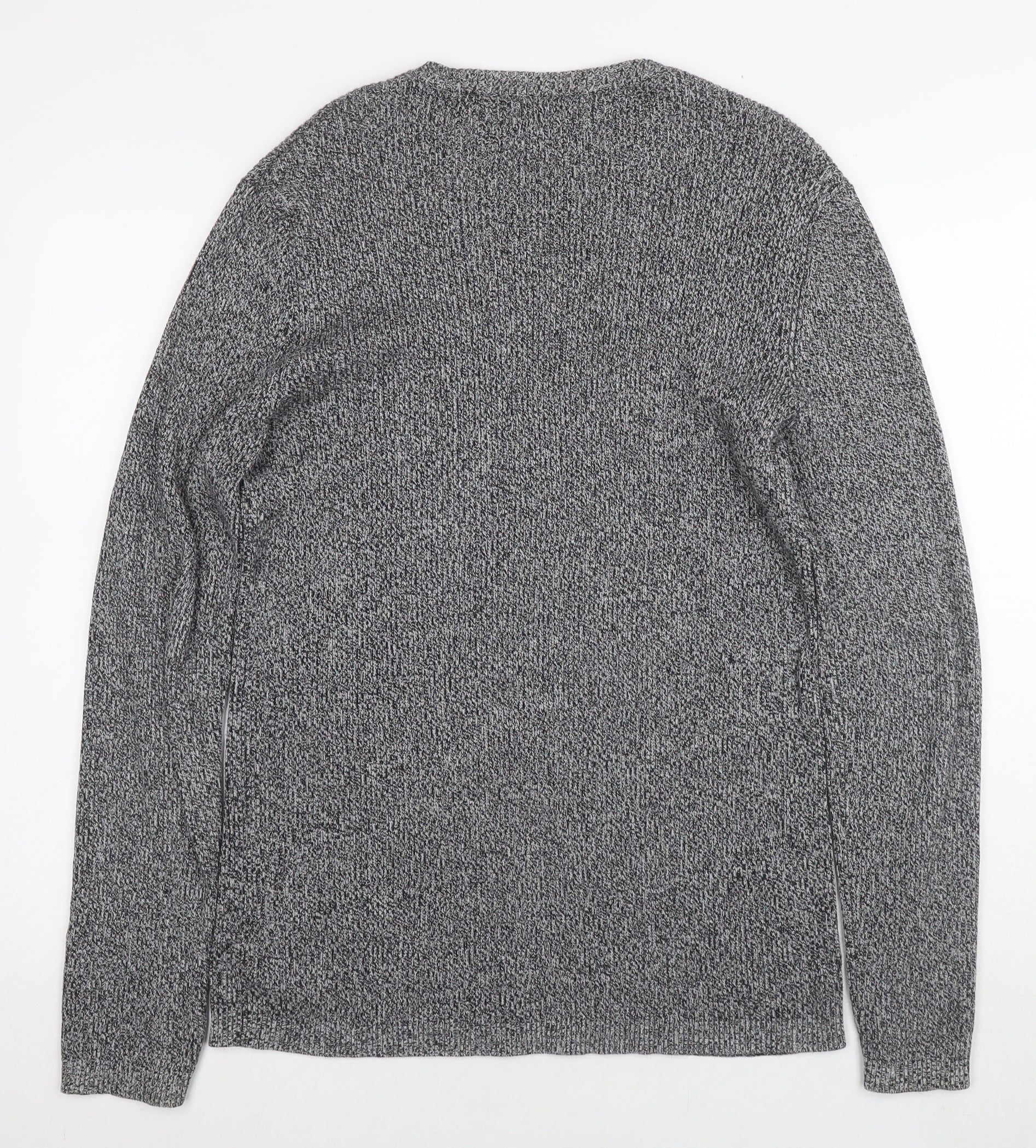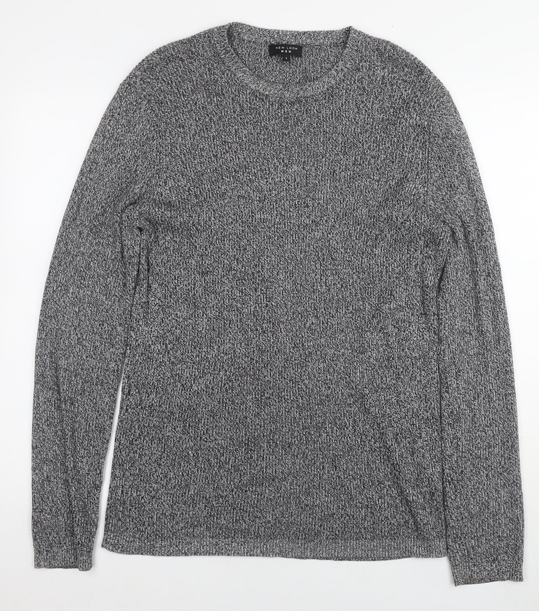 New Look Mens Grey Round Neck Cotton Pullover Jumper Size L Long Sleeve
