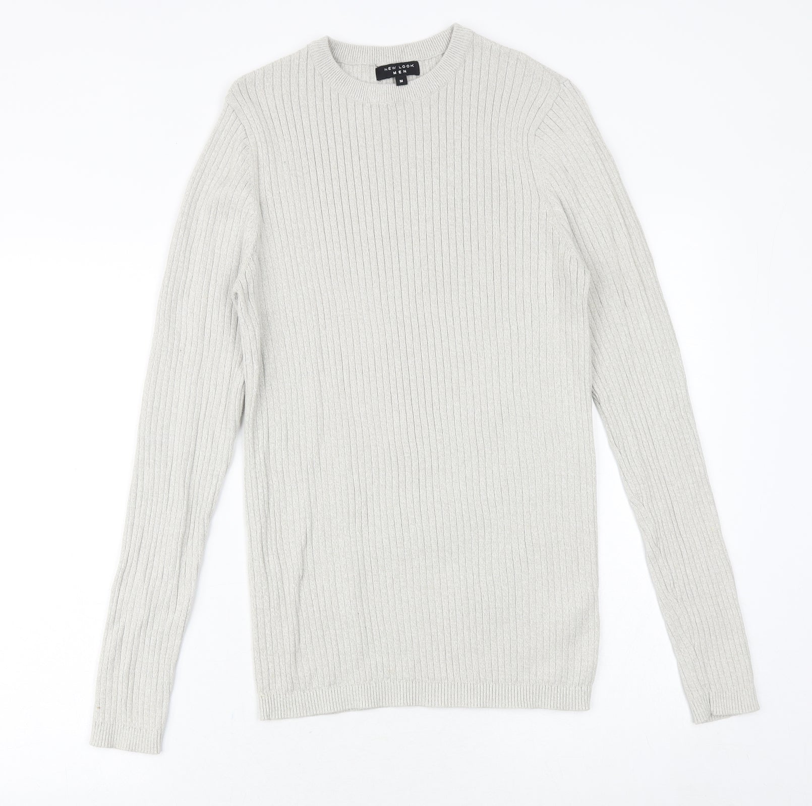 New Look Mens Grey Round Neck Cotton Pullover Jumper Size M Long Sleeve