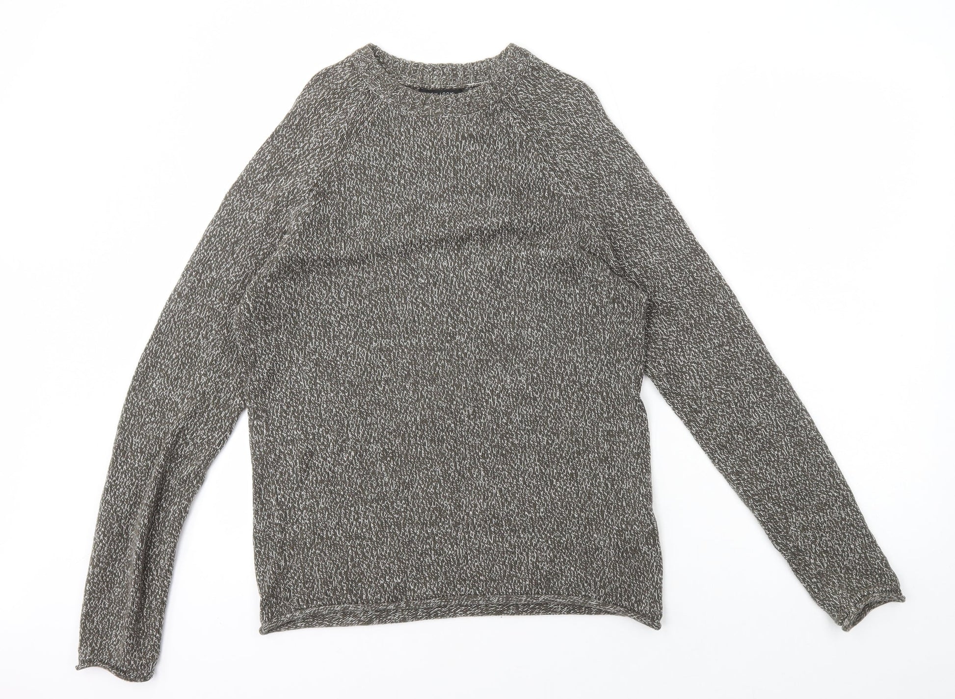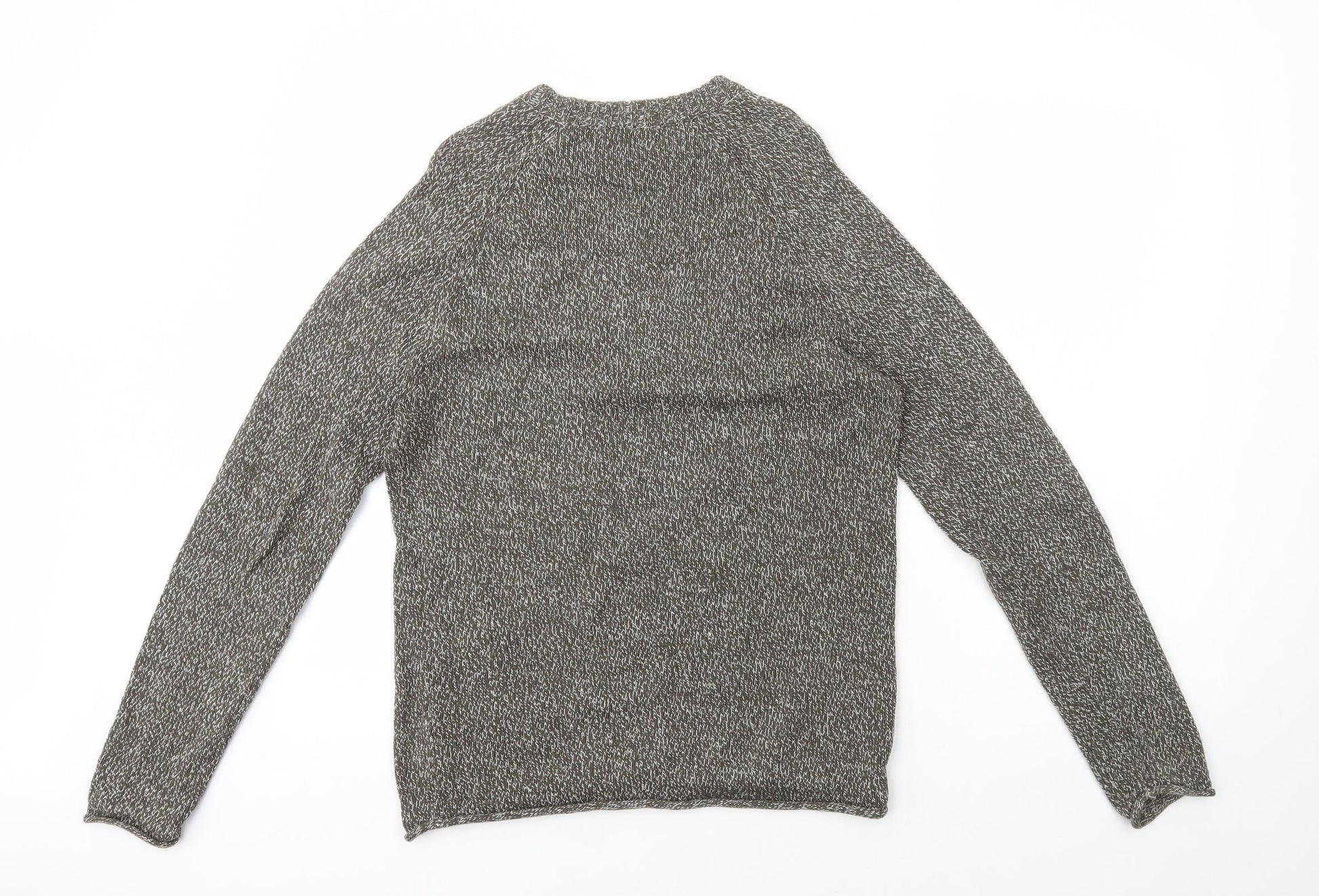 New Look Mens Grey Round Neck Cotton Pullover Jumper Size S