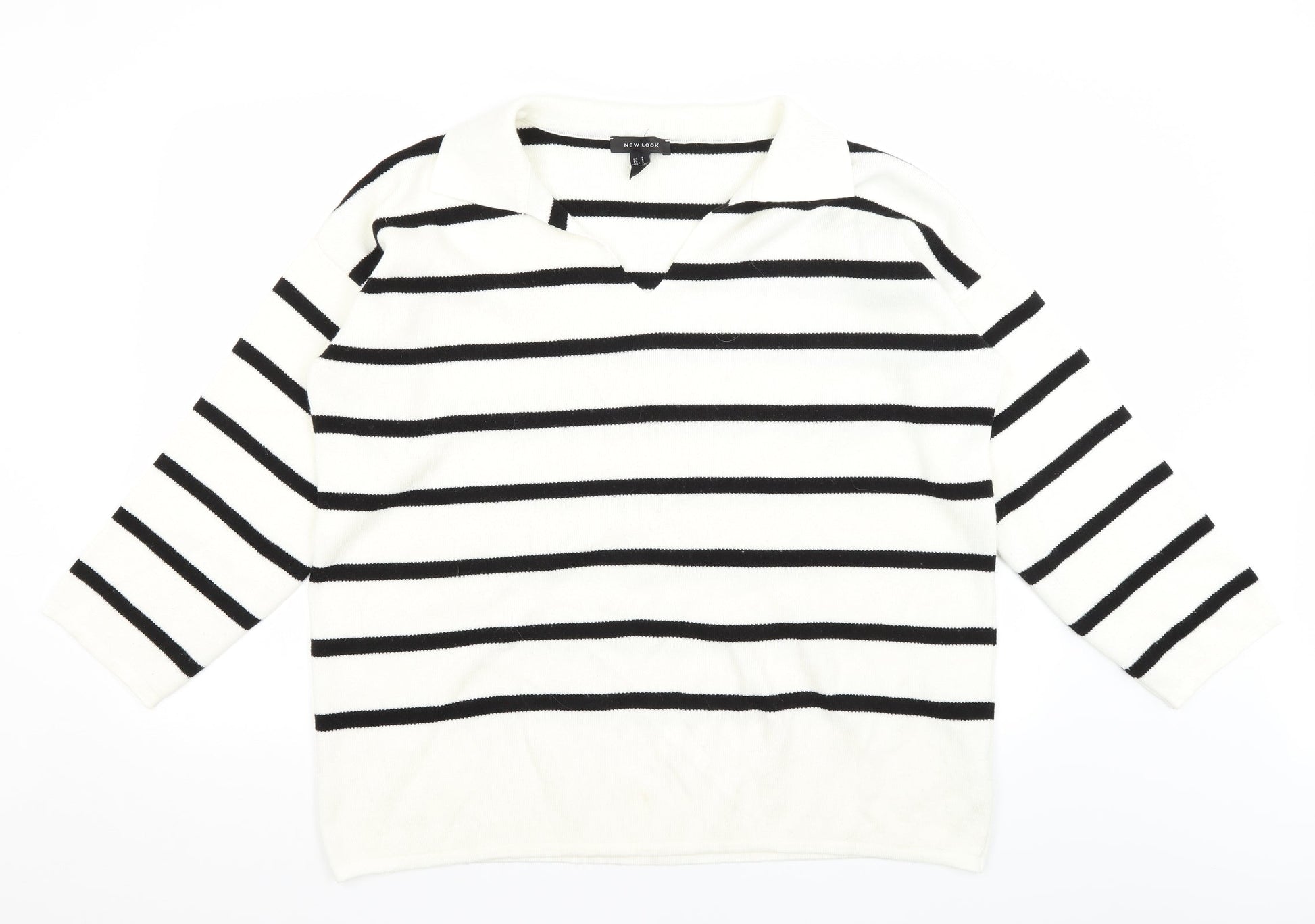 New Look Mens Ivory Striped Pullover Jumper Size S