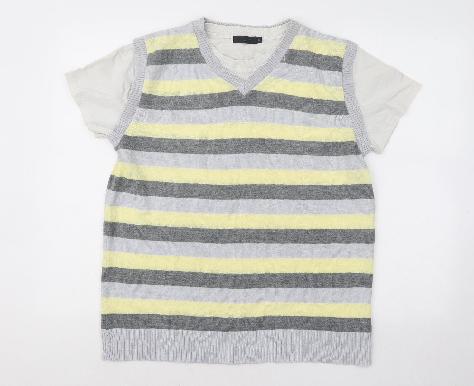 New Look Mens Multicoloured Round Neck Striped Acrylic Pullover Jumper Size M