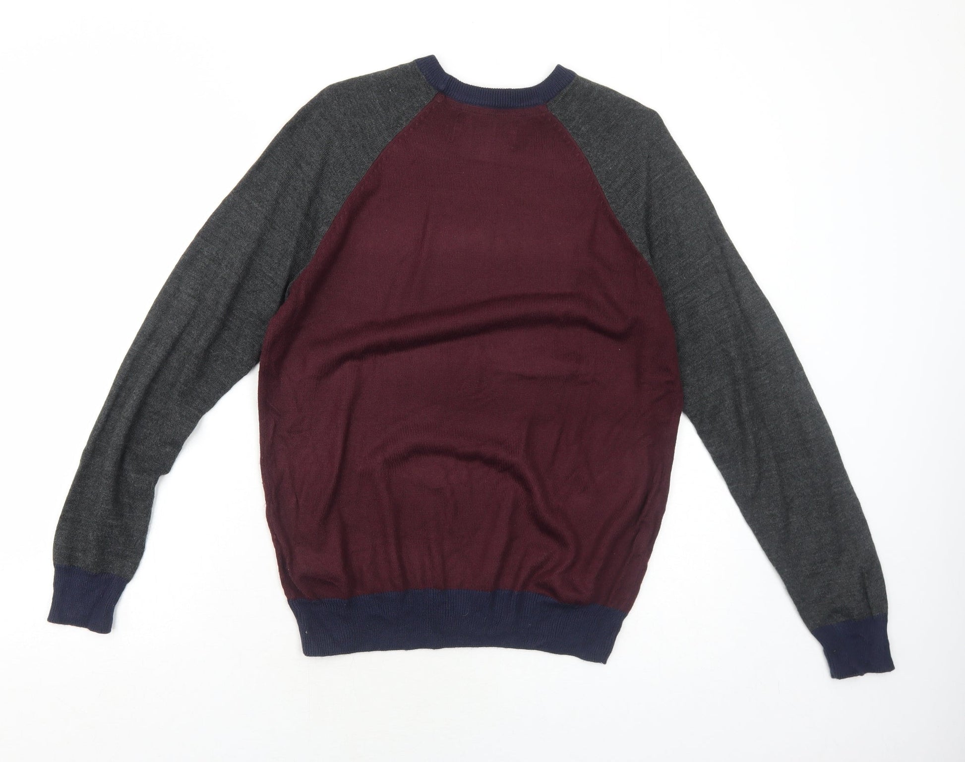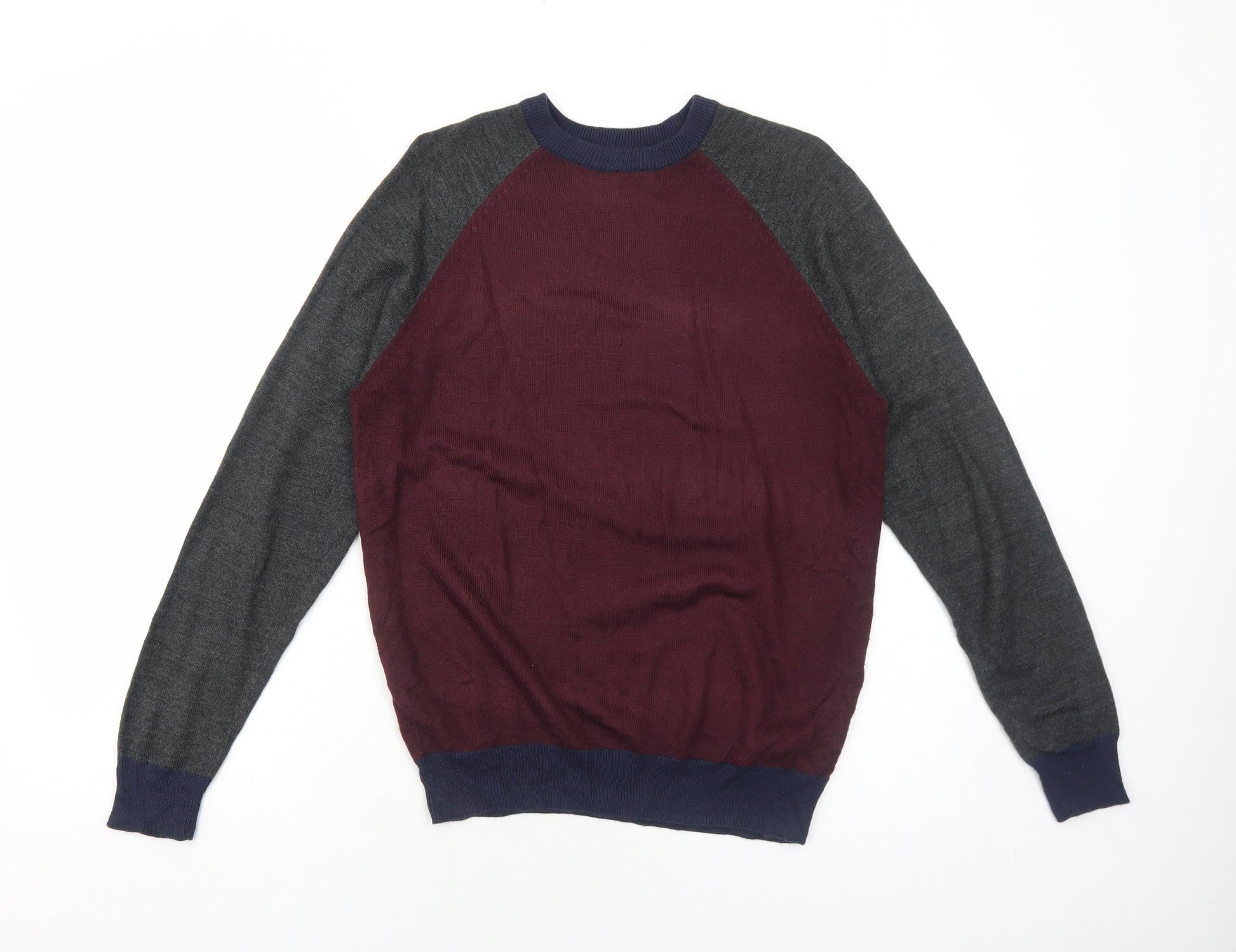 New Look Mens Purple Round Neck Acrylic Pullover Jumper Size S Long Sleeve