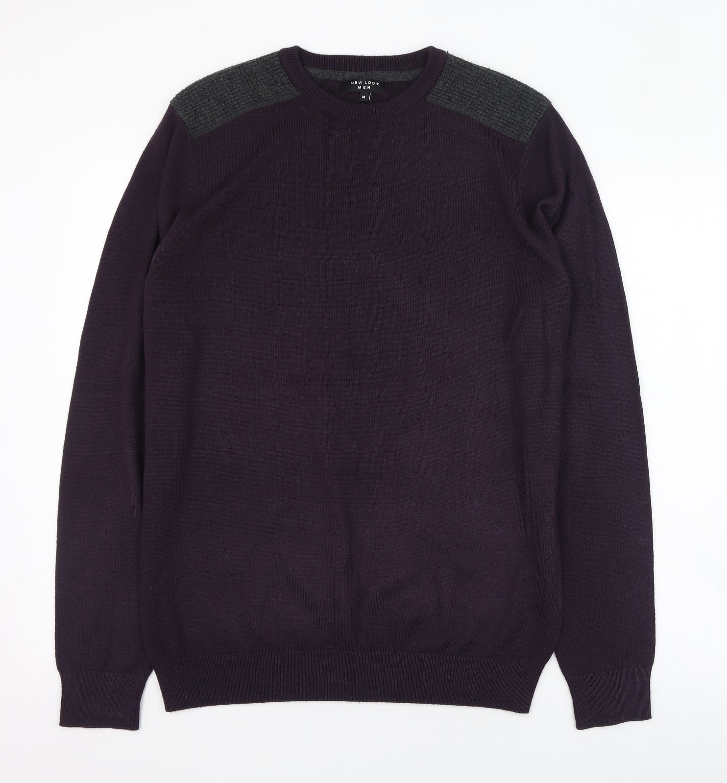 New Look Mens Purple Round Neck Polyester Pullover Jumper Size M