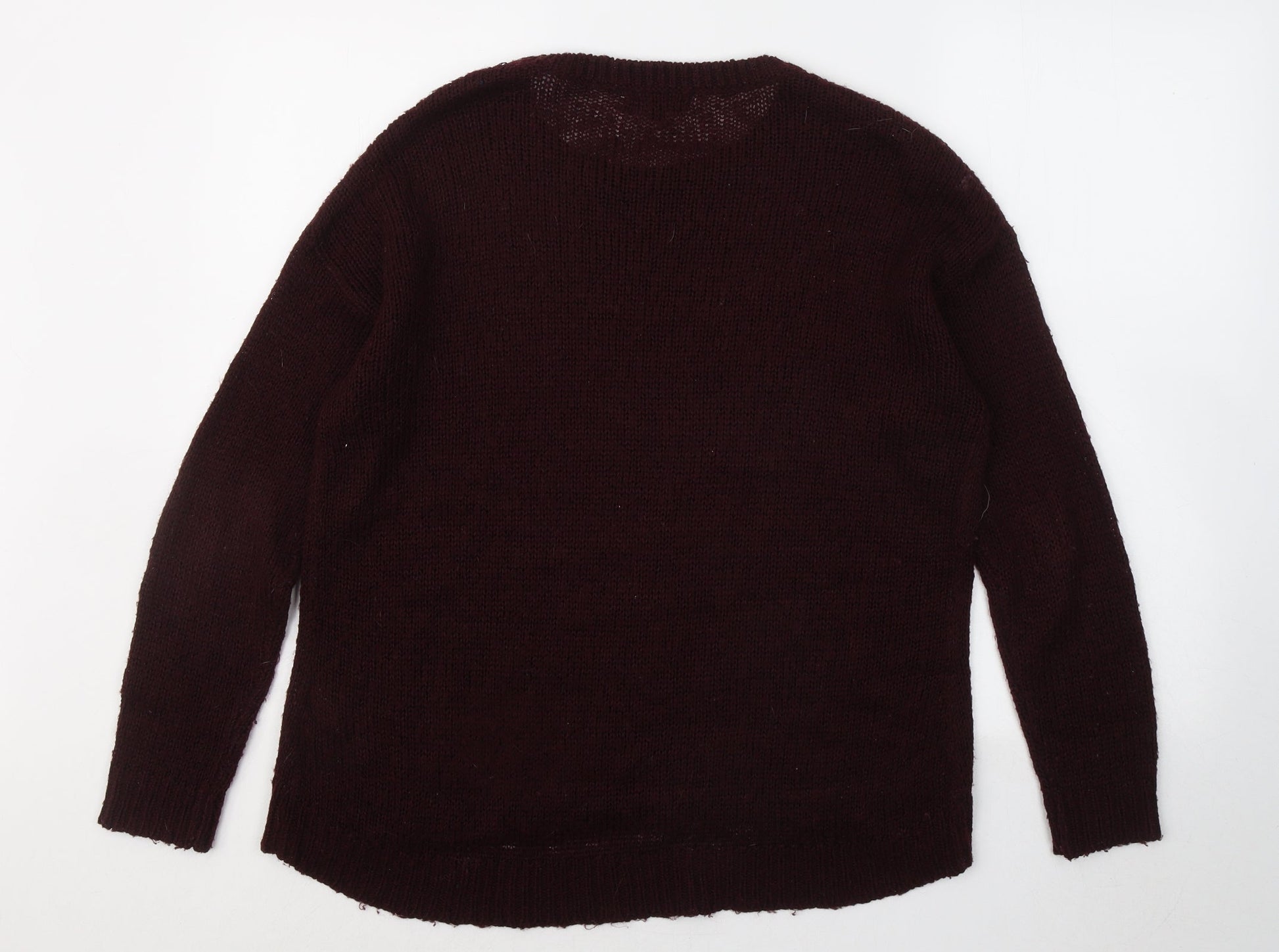 New Look Mens Red Round Neck Acrylic Pullover Jumper Size M