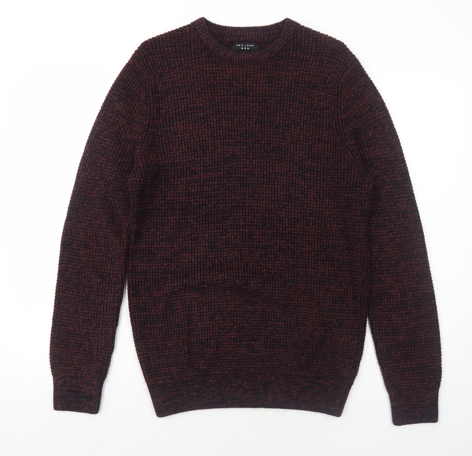 New Look Mens Red Round Neck Acrylic Pullover Jumper Size M Long Sleeve