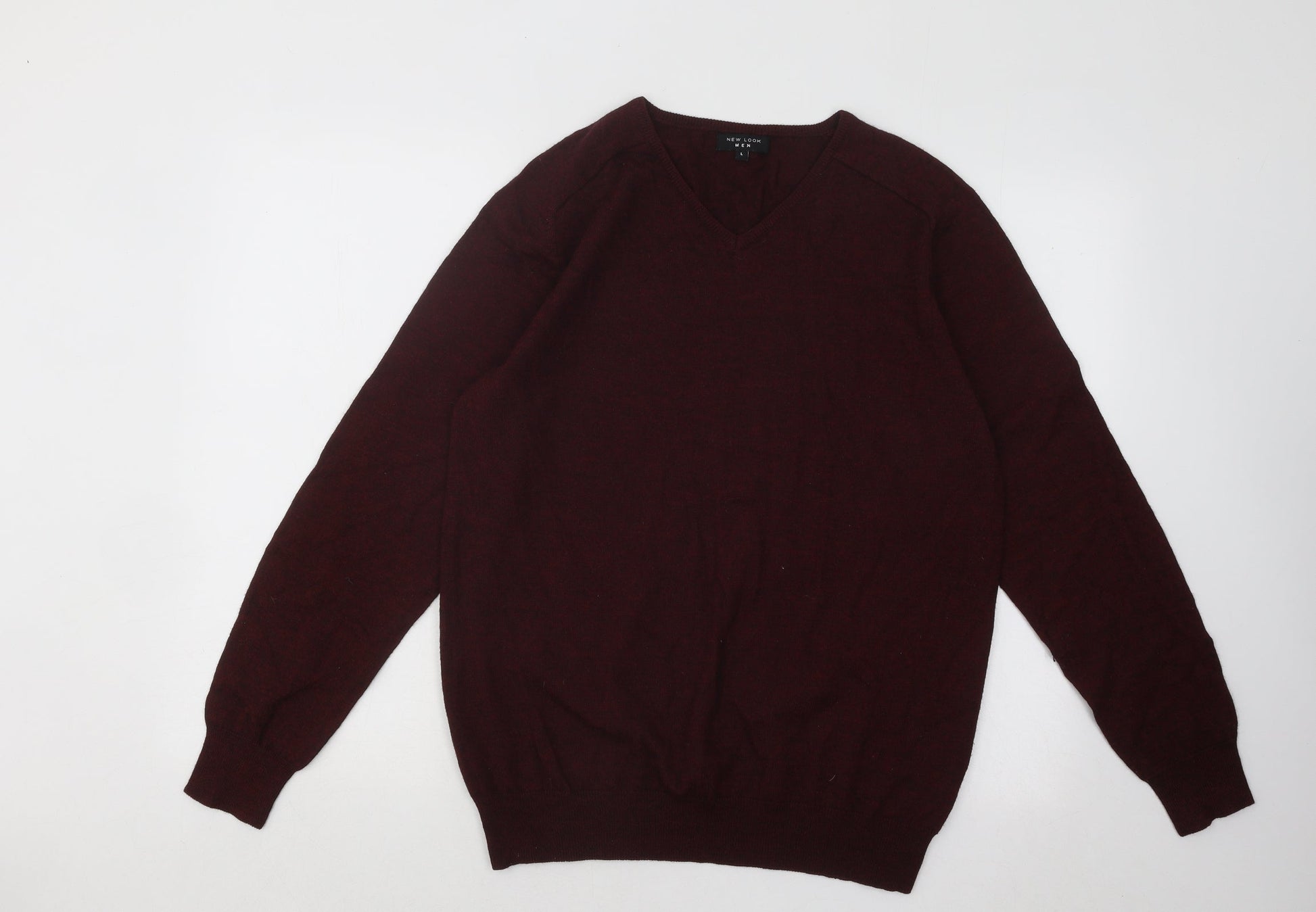 New Look Mens Red V-Neck Acrylic Pullover Jumper Size L