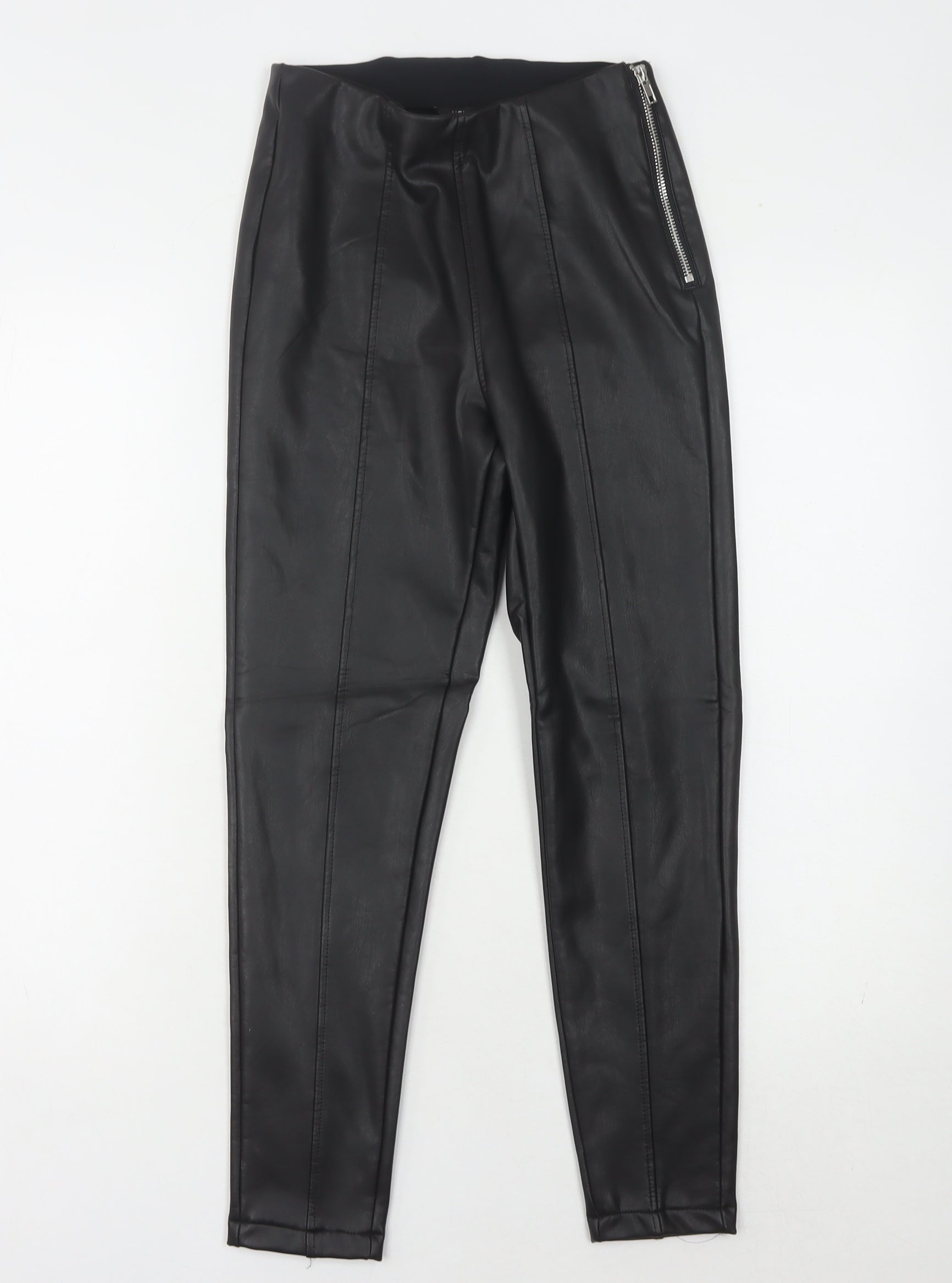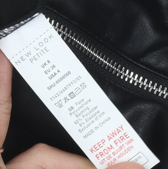 New Look Petite Black Leather Look Leggings, UK 8, Women