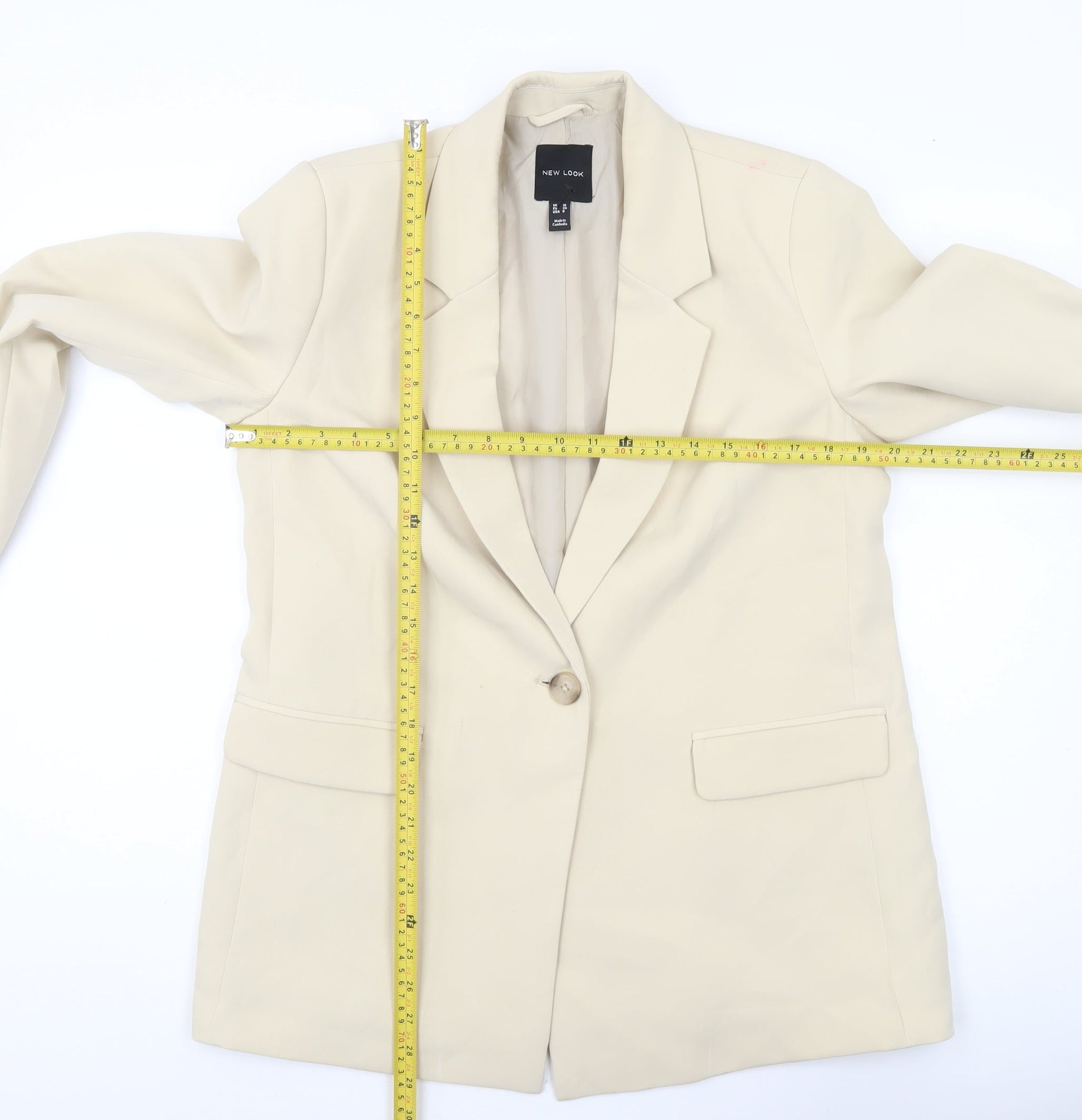 New Look Women Beige Blazer UK 10 Regular Fit Single Breasted