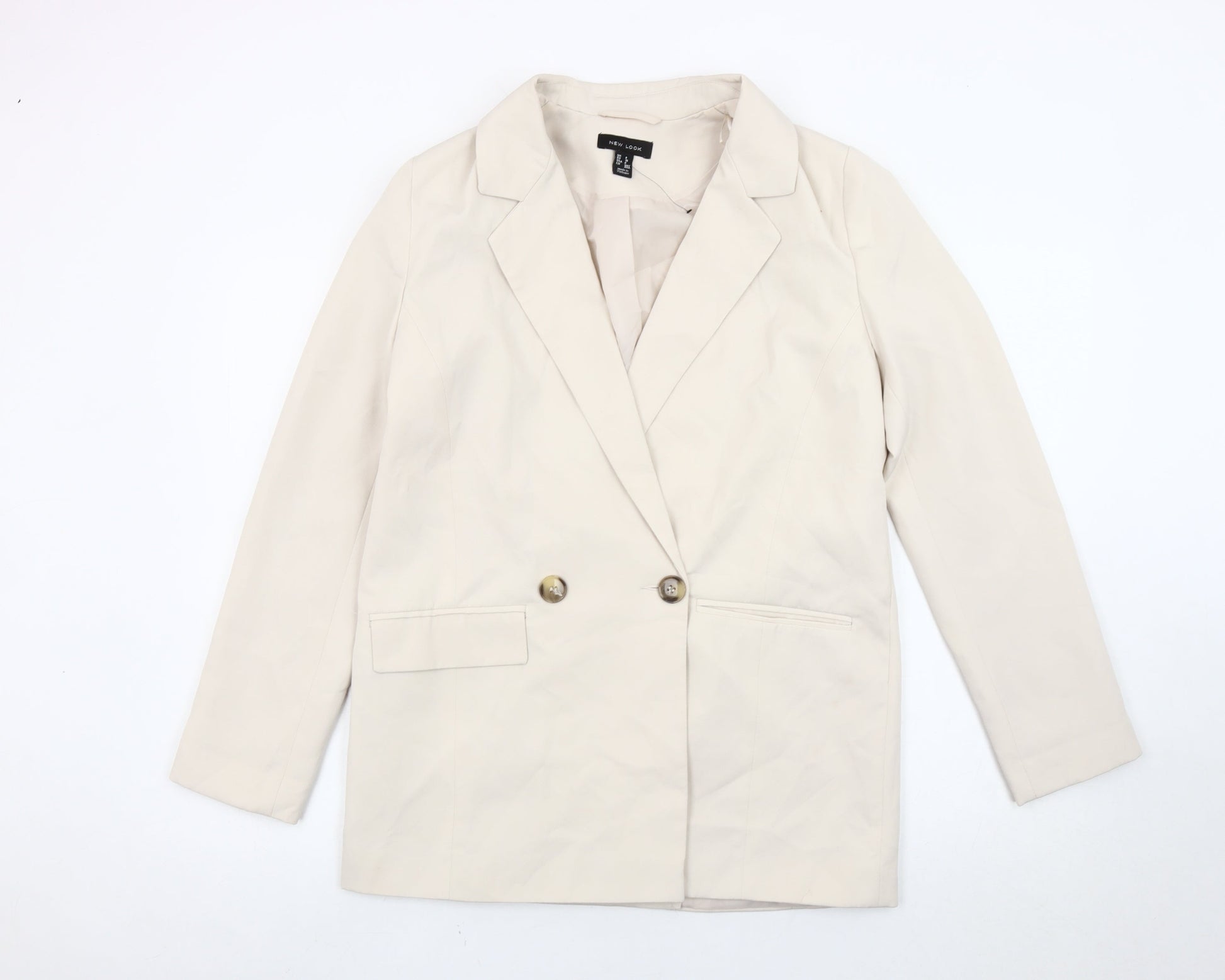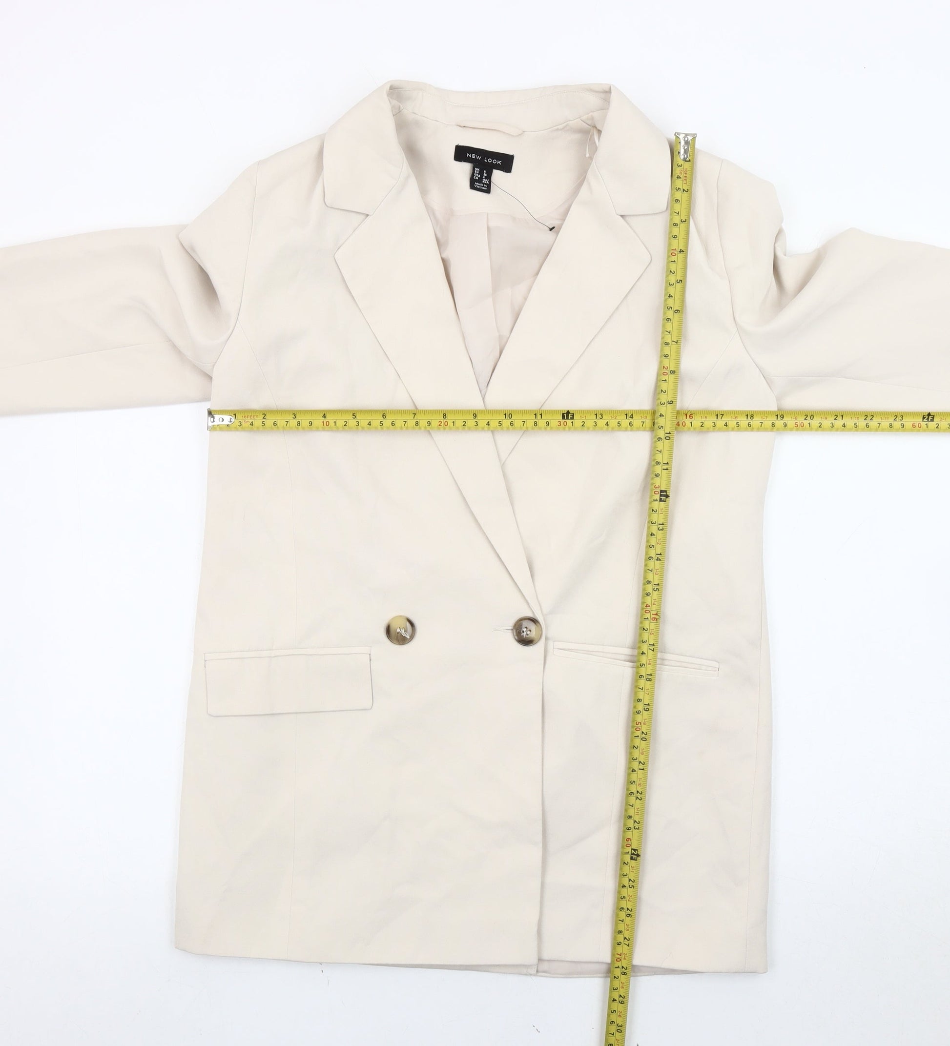 New Look Women Beige Size 8 Double-Breasted Blazer Jacket