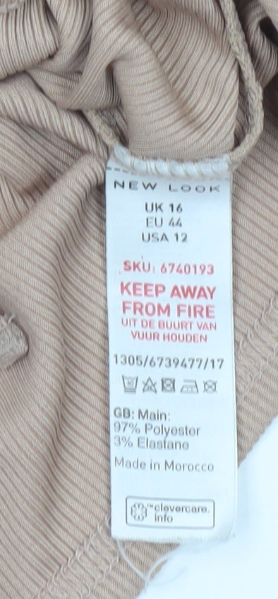 New Look Women Beige Wrap Long Sleeve Top UK 16 Regular Fit