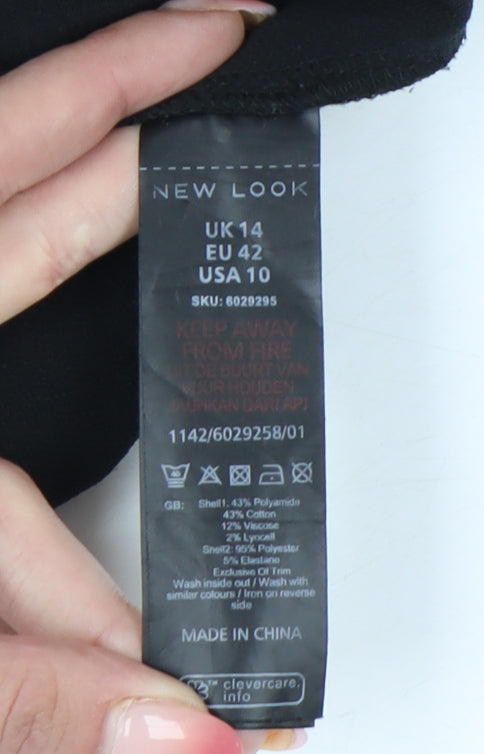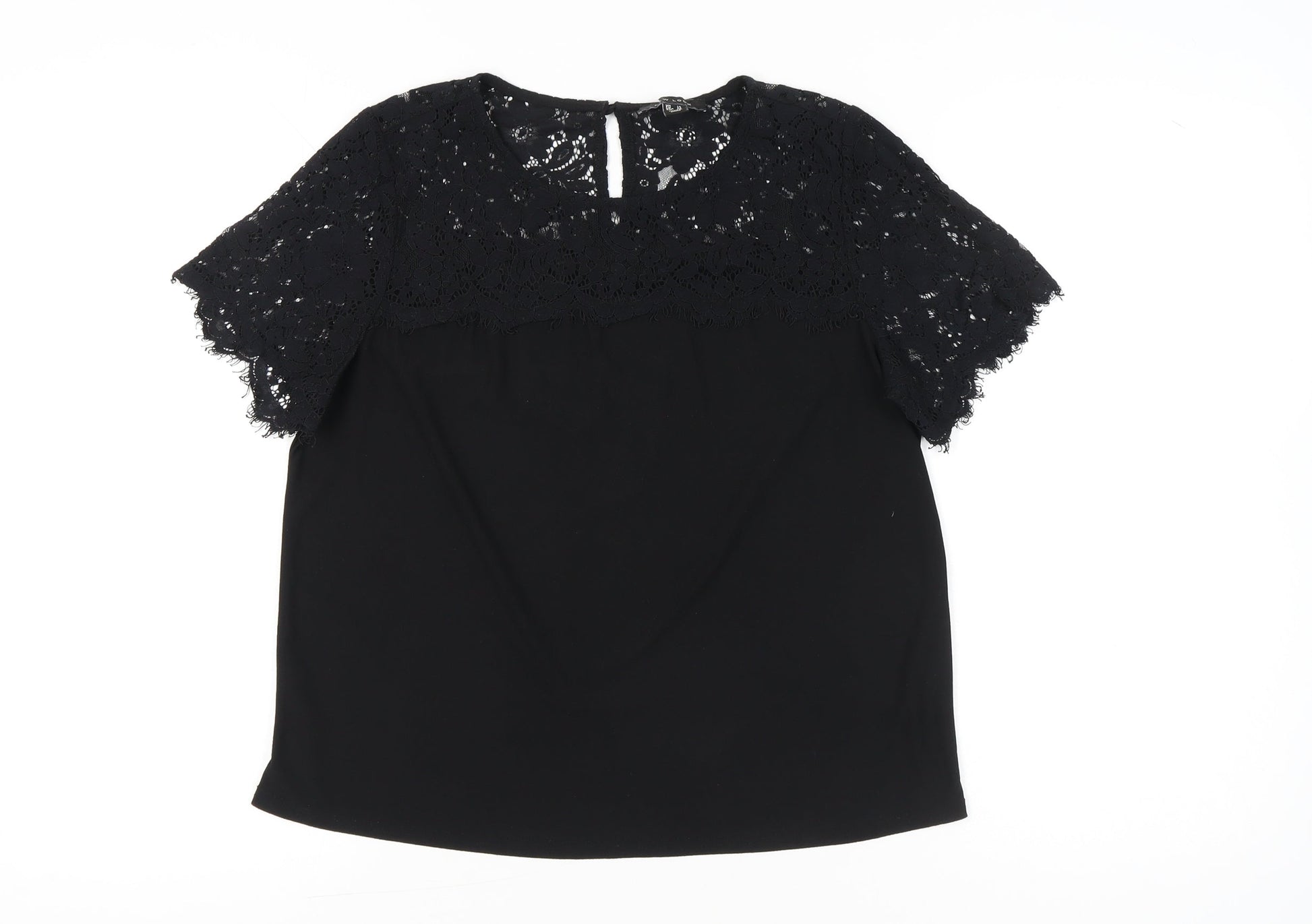 New Look Women Black Lace Tunic Blouse UK 14 Round Neck Short Sleeve