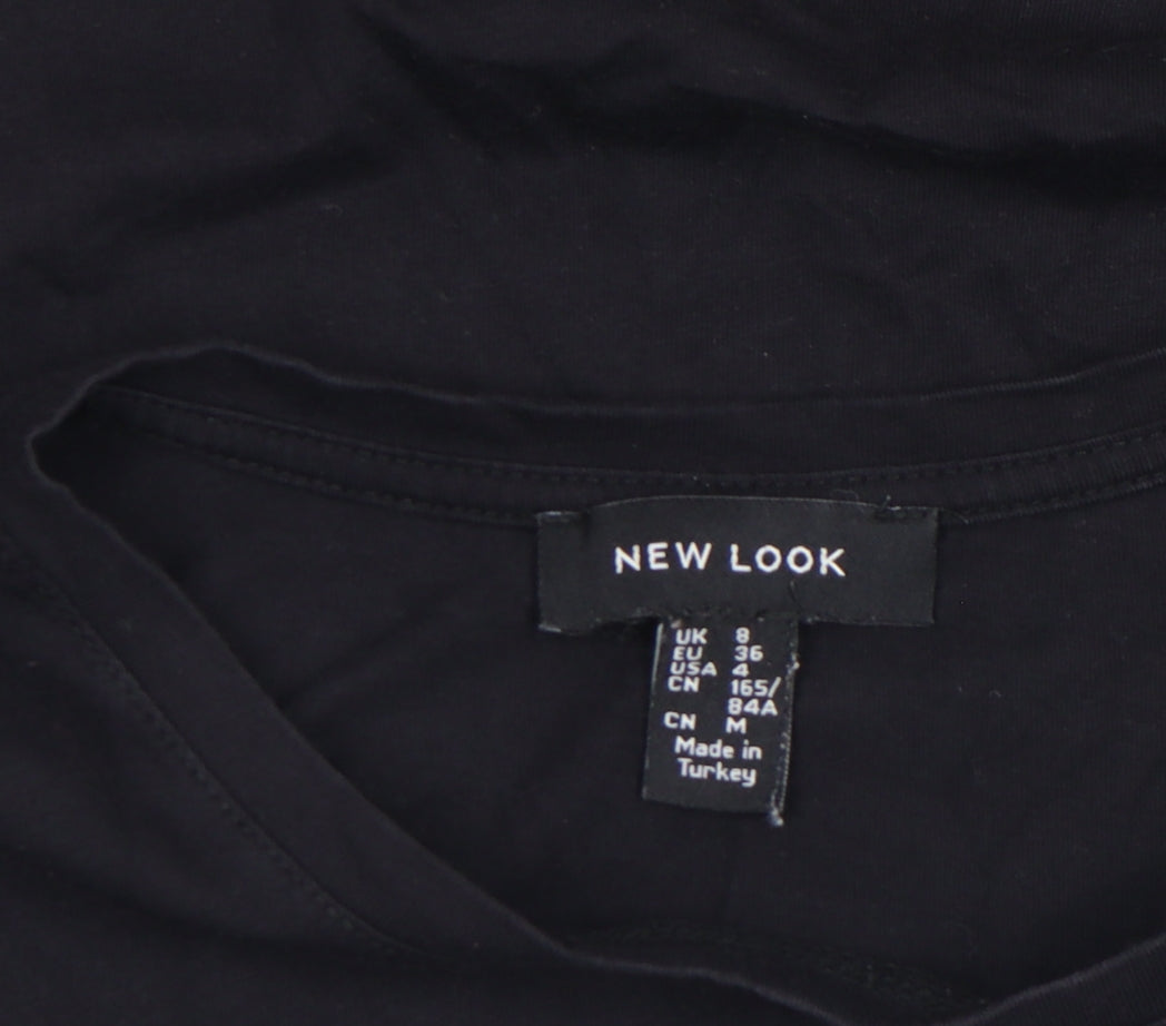 New Look Women Black Ruffle Sleeve Self Love T-Shirt Size 8