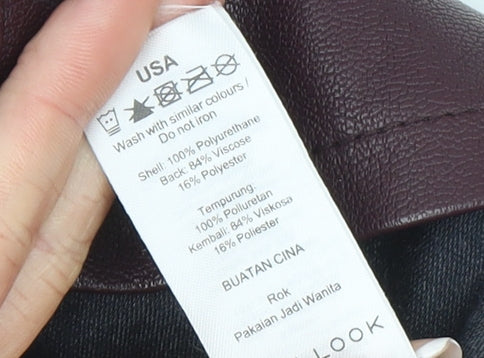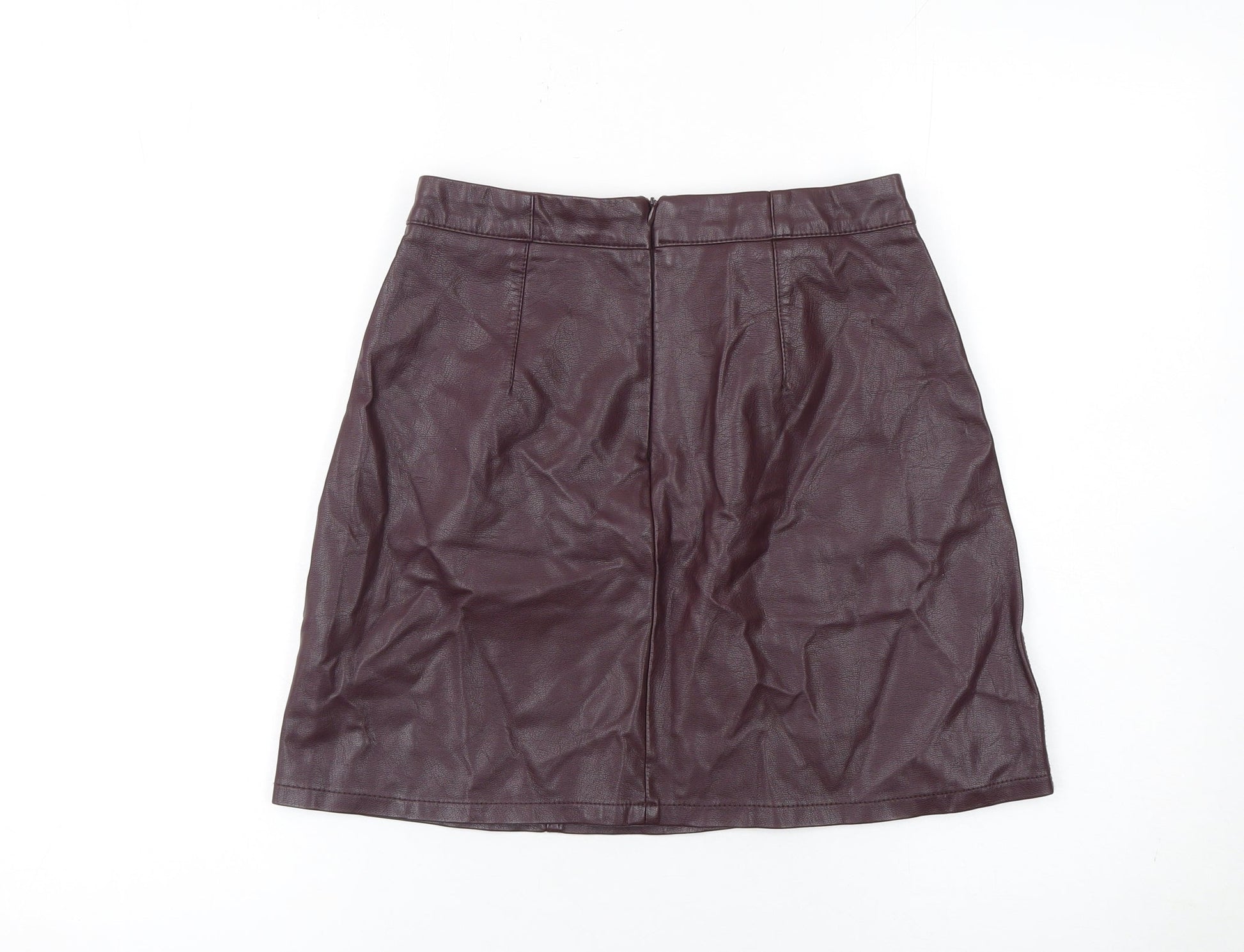 New Look Women Brown Faux Leather Short Pencil Skirt Size 8