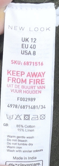 New Look Women Green Button-Up Collared Short Sleeve Playsuit Size 12