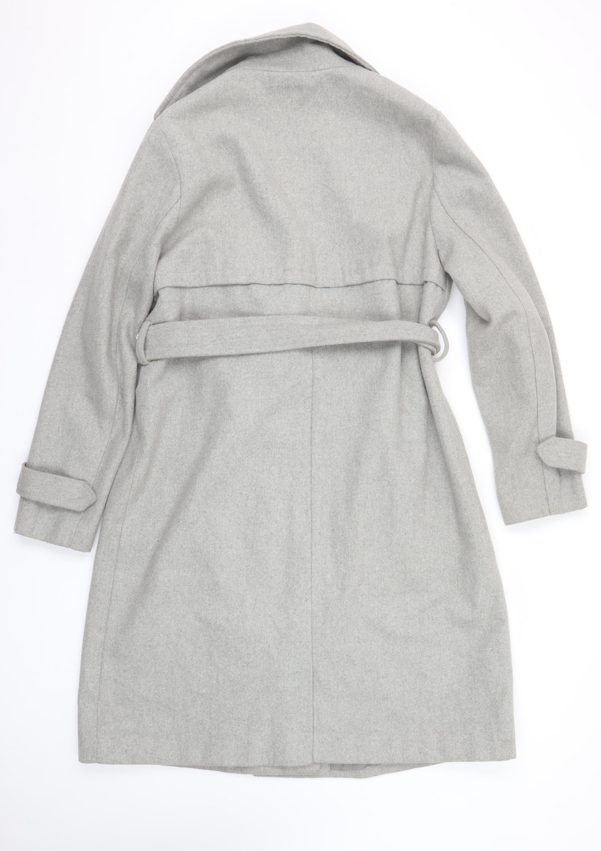 New Look Women Grey Belted Long Trench Coat Size 14