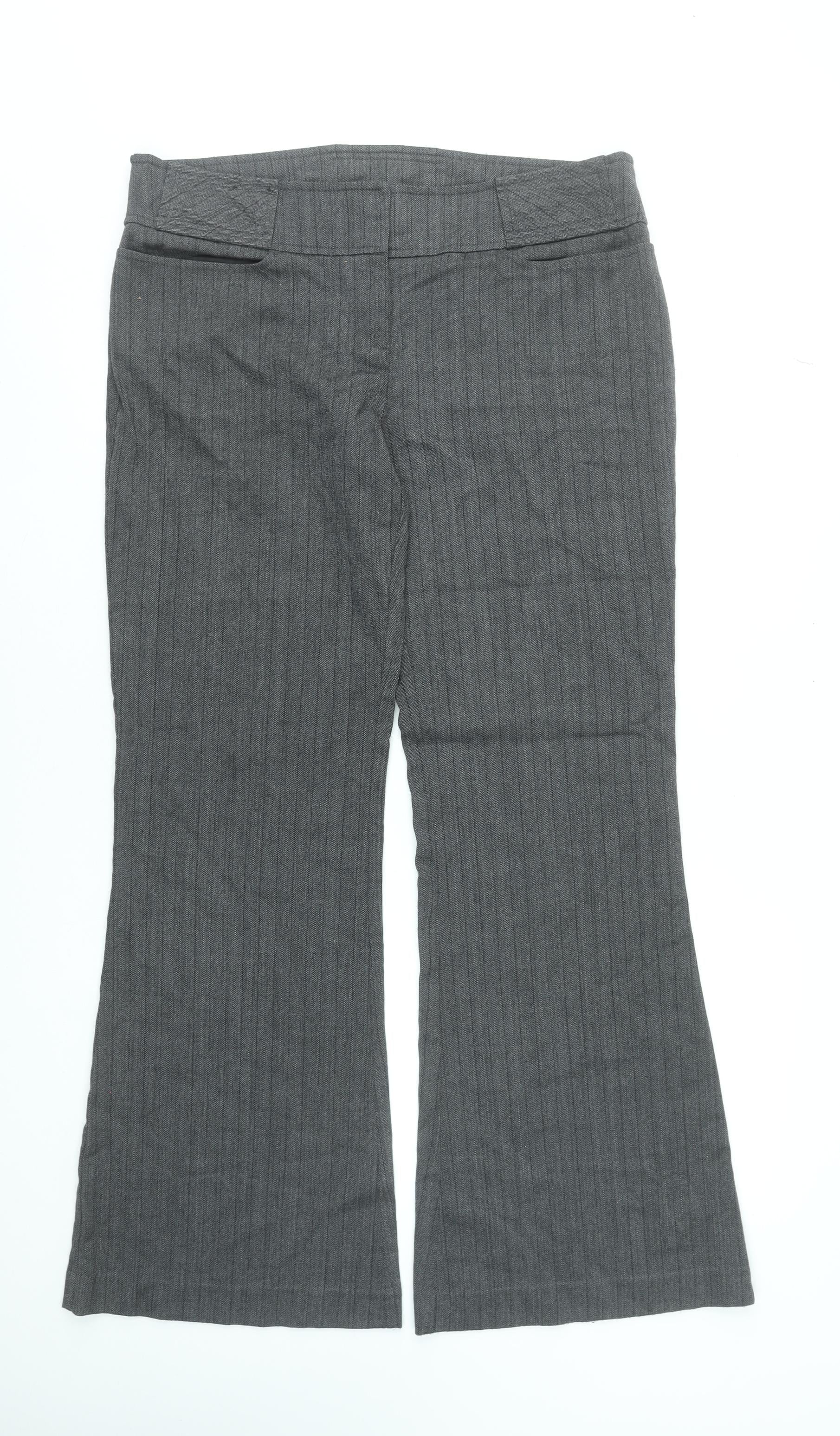 New Look Women Grey Pinstripe Flared Dress Trousers Size 14