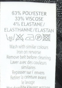 - Material Breakdown: 63% Polyester 33% Viscose 4% Elastane