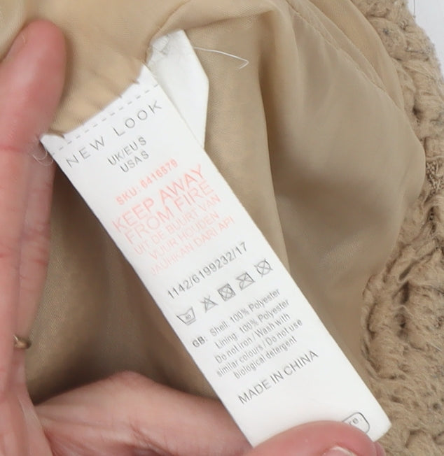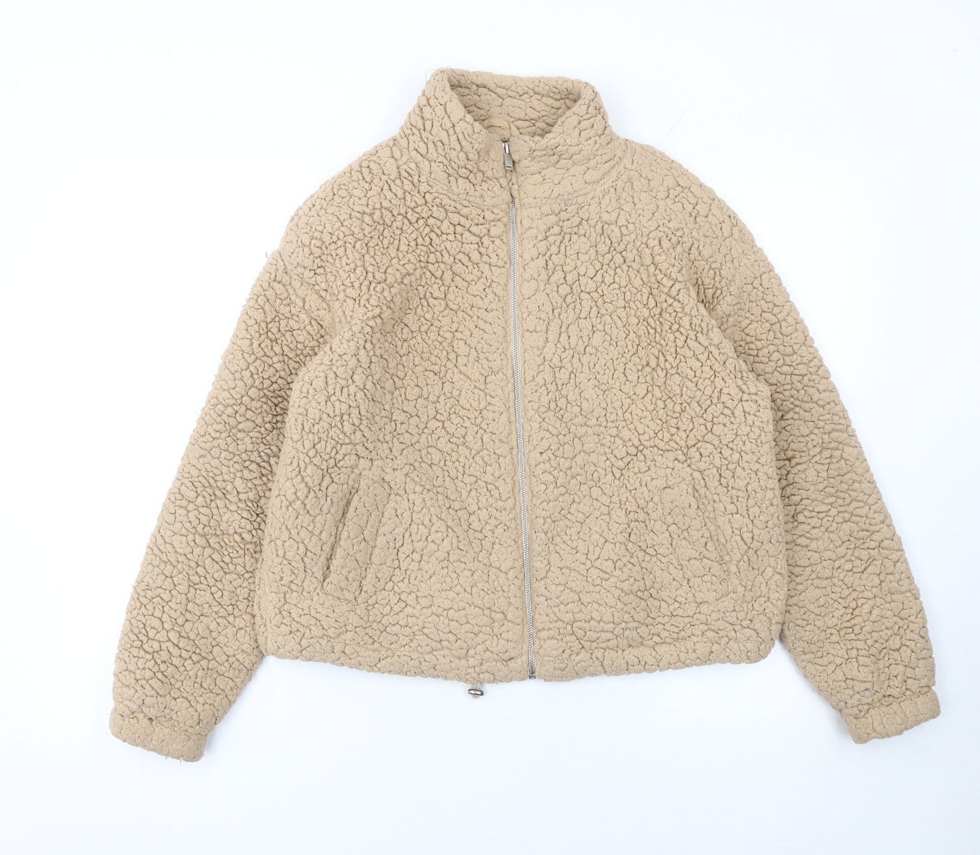 New Look Women’s Beige Fleece Teddy Jacket Size S Full Zip Casual