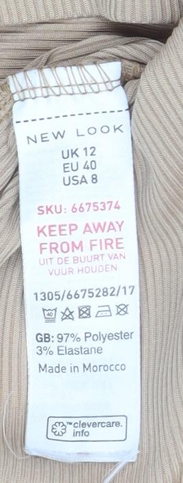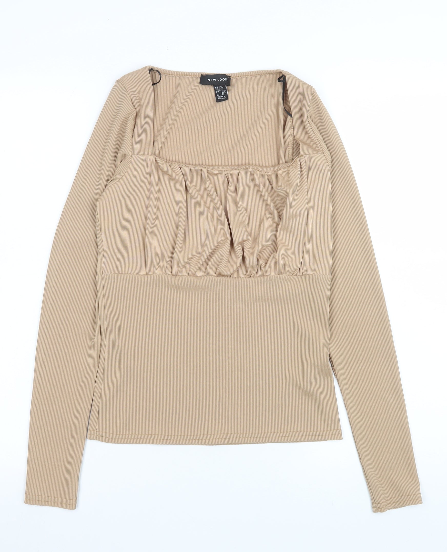 New Look Women’s Beige Long Sleeve Square Neck Tunic Blouse Size 12