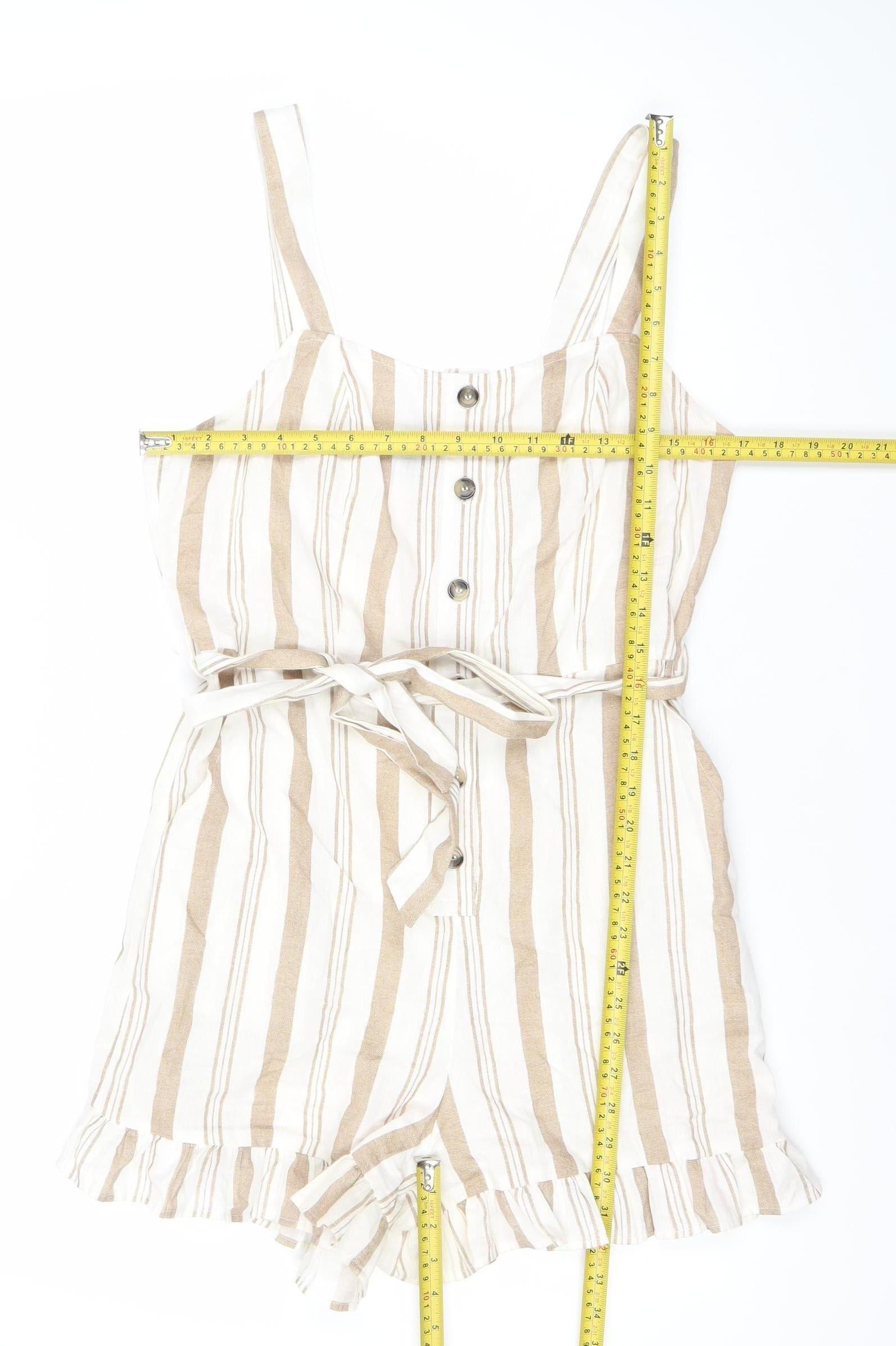 New Look Women’s Beige Striped Cotton Linen Size 10 Playsuit