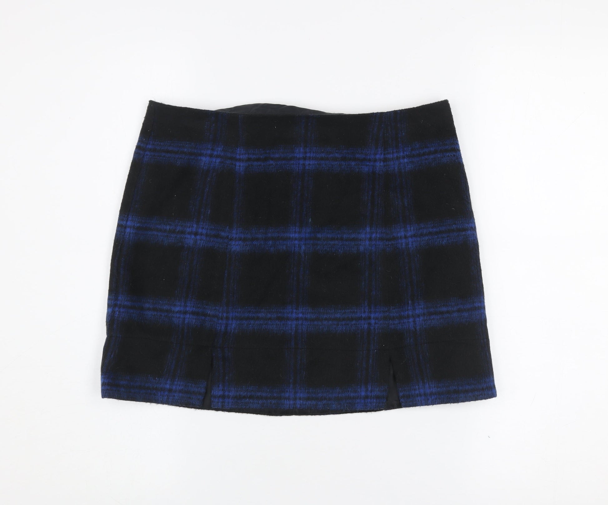 New Look Women’s Black Blue Plaid Wool Blend Mini Skirt Size 10
