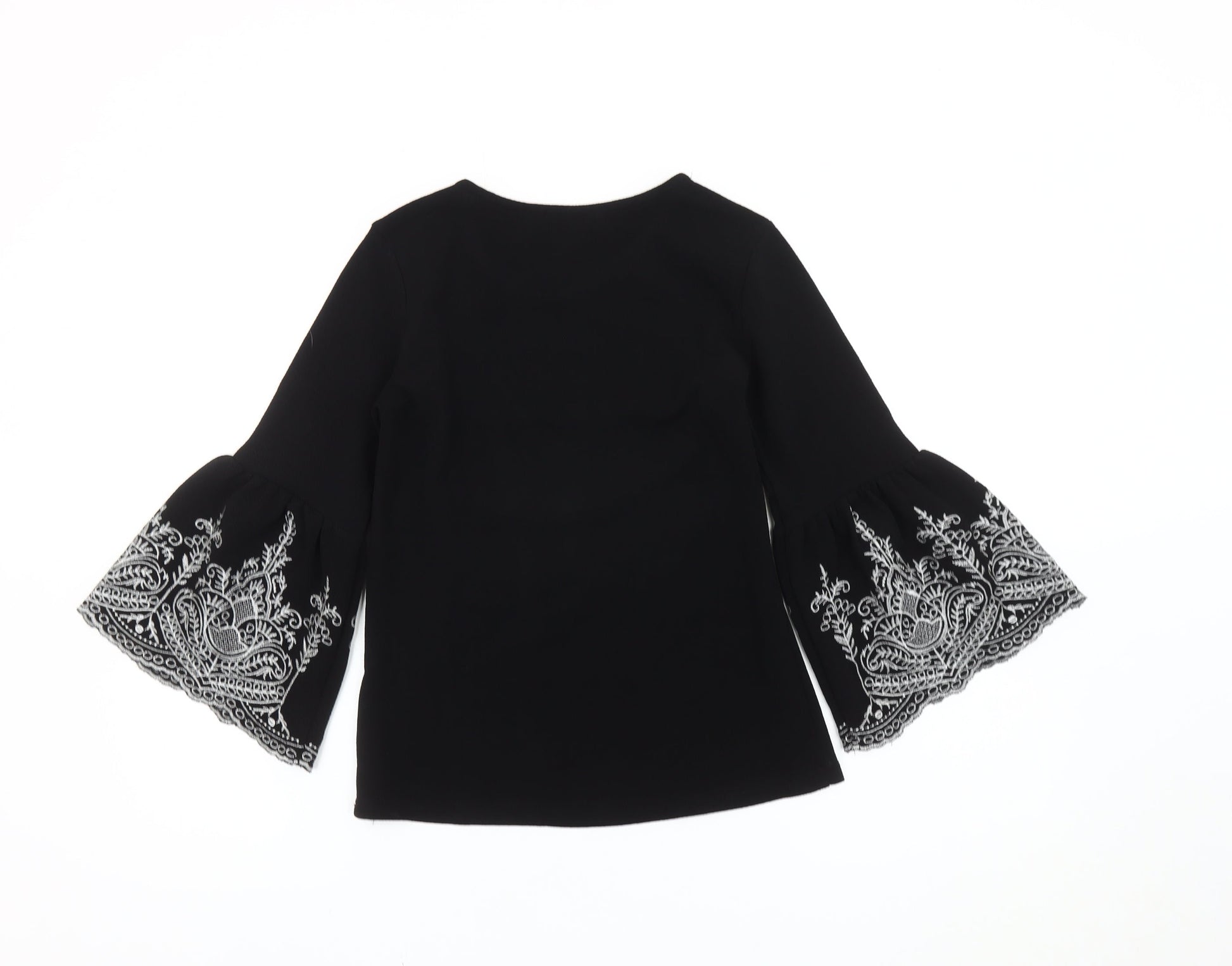 New Look Women’s Black Embroidered Bell Sleeve Tunic Top Size 6