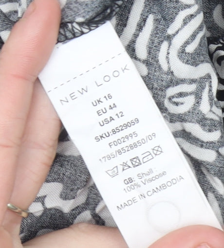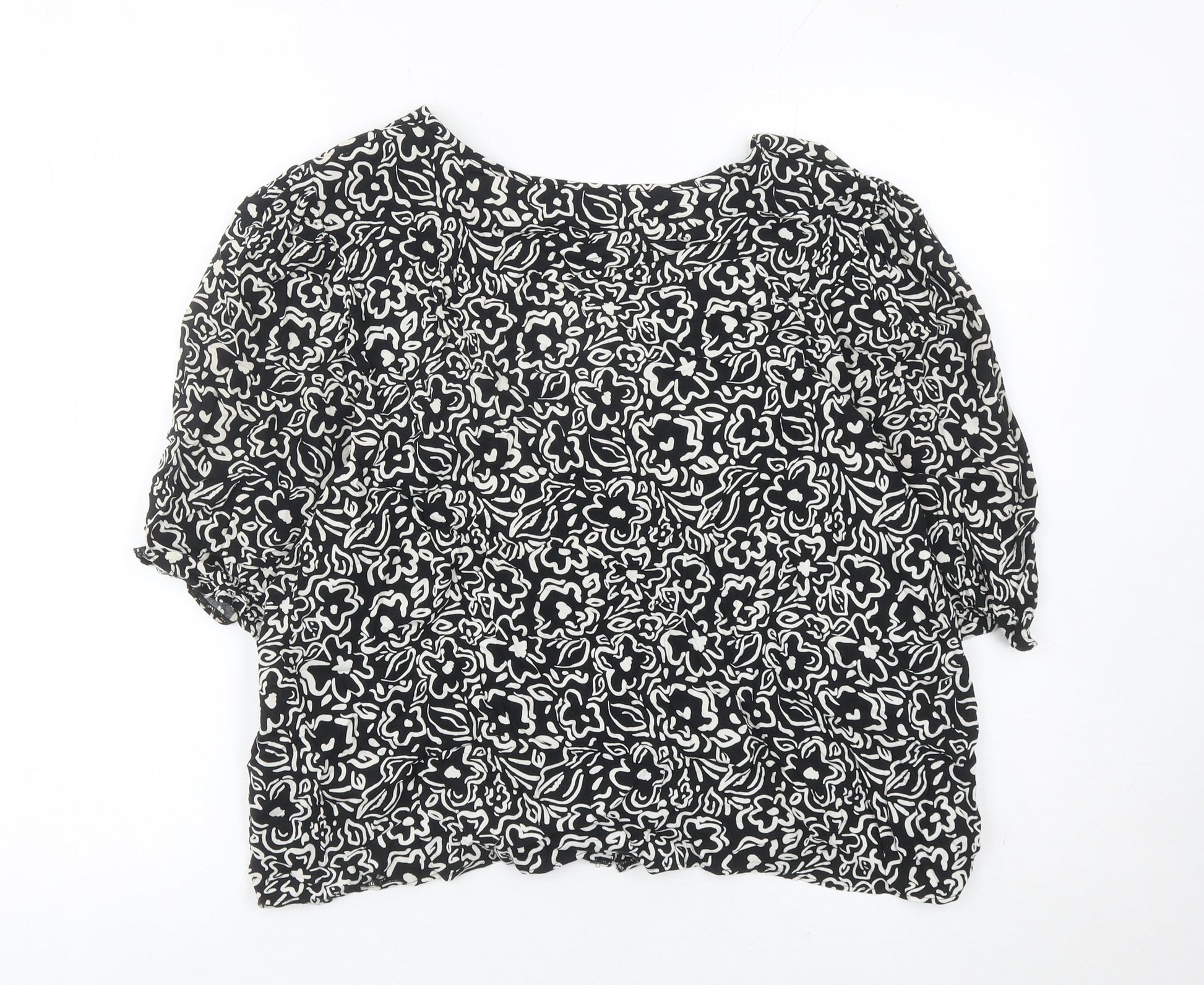 New Look Women’s Black Floral Viscose Cropped Blouse UK 16