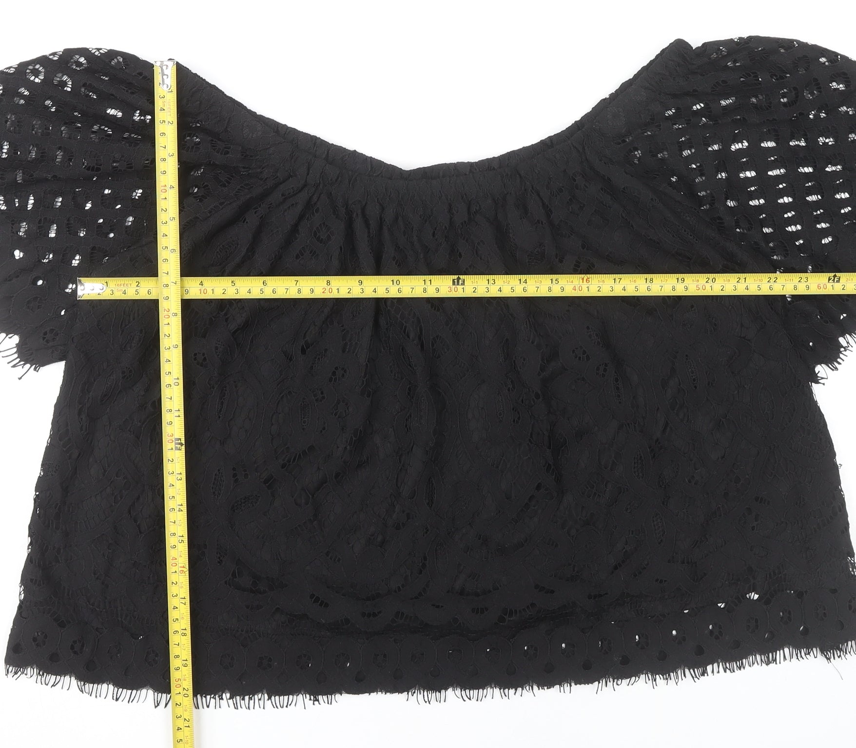 New Look Women’s Black Lace Cropped Blouse UK 18 Off Shoulder