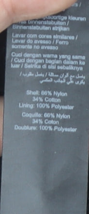 - Material Breakdown: 66% Nylon 34% Cotton