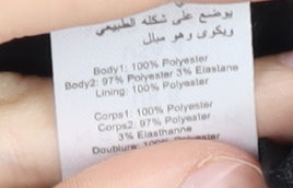 - Material Breakdown: 97% Polyester 3% Elastane