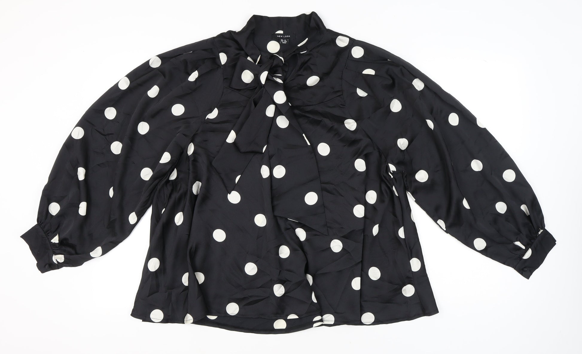 New Look Women’s Black Polka Dot Long Sleeve Blouse UK 12