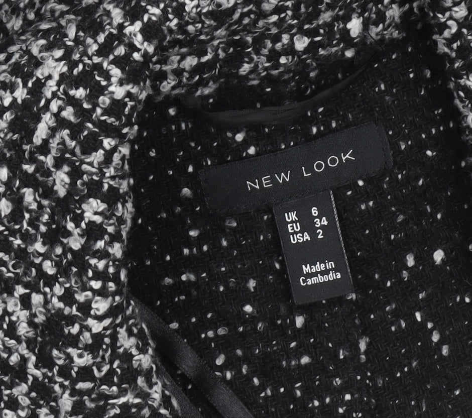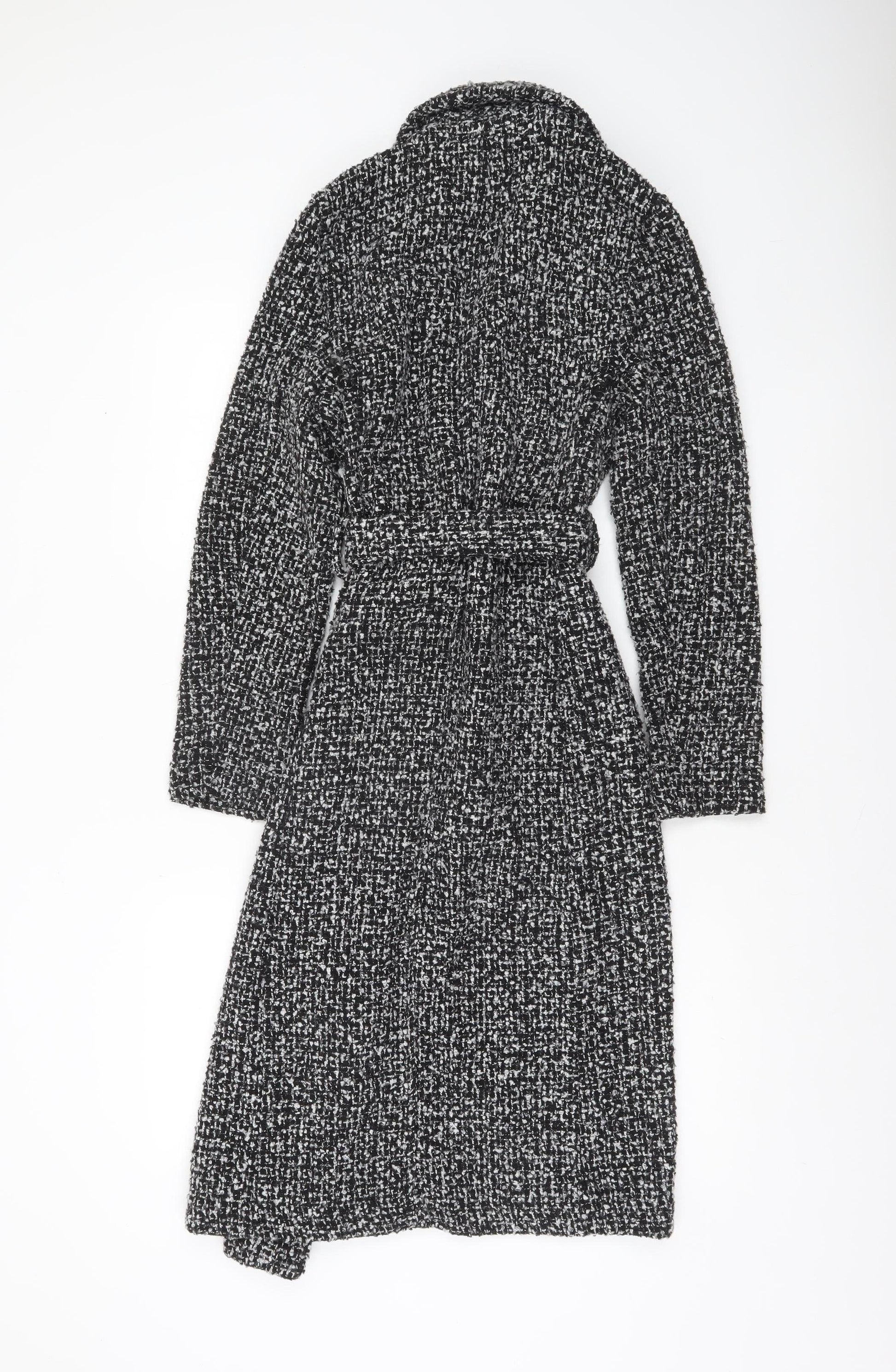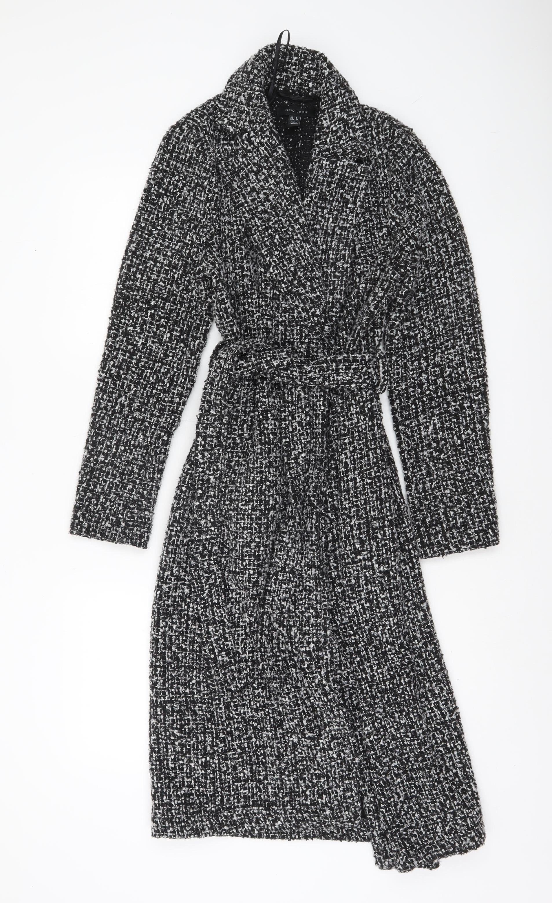 New Look Women’s Black Tweed Belted Long Wool Blend Coat Size 6