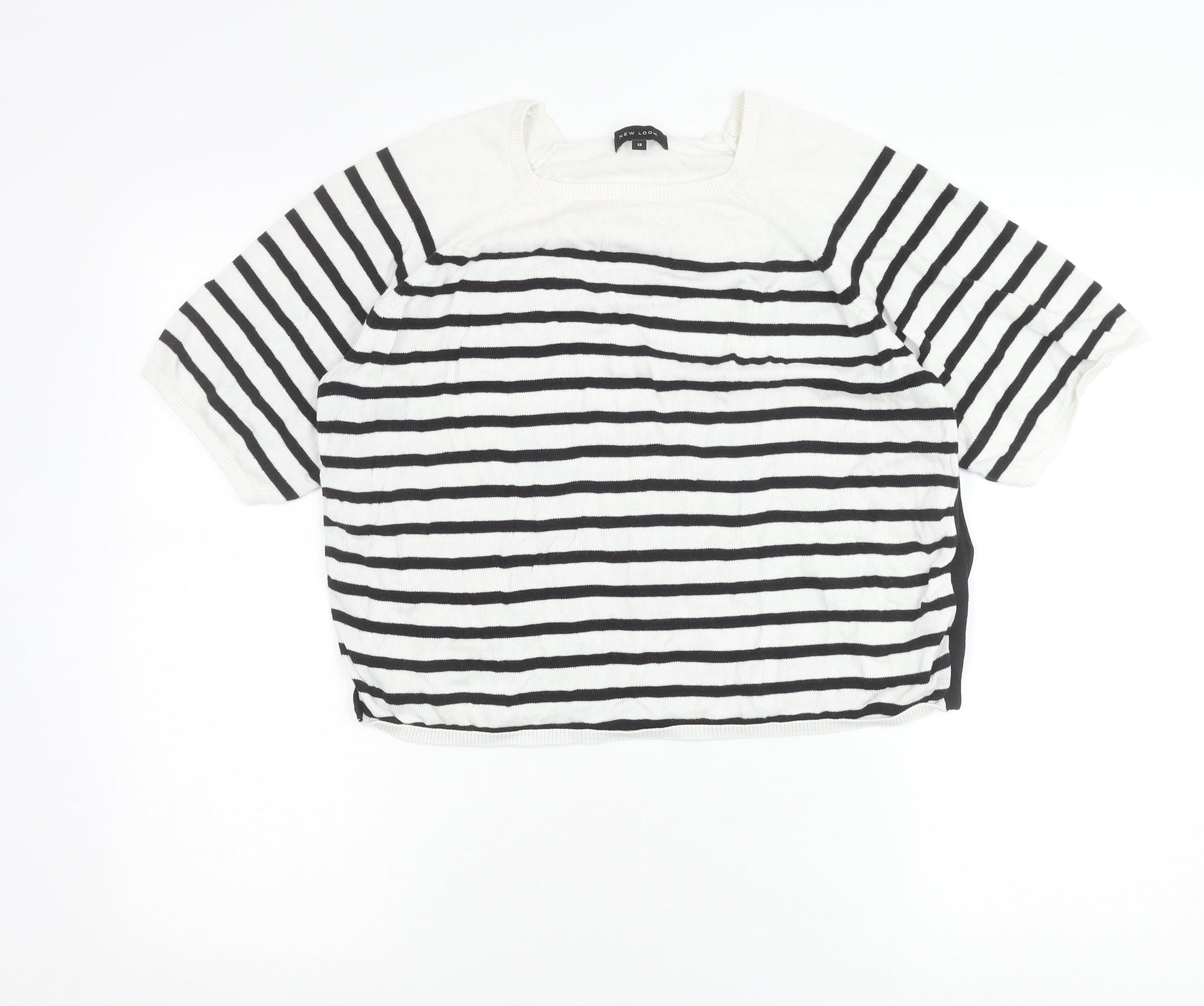 New Look Women’s Black White Striped T-Shirt Size 12 Short Sleeve