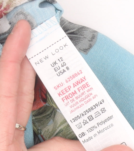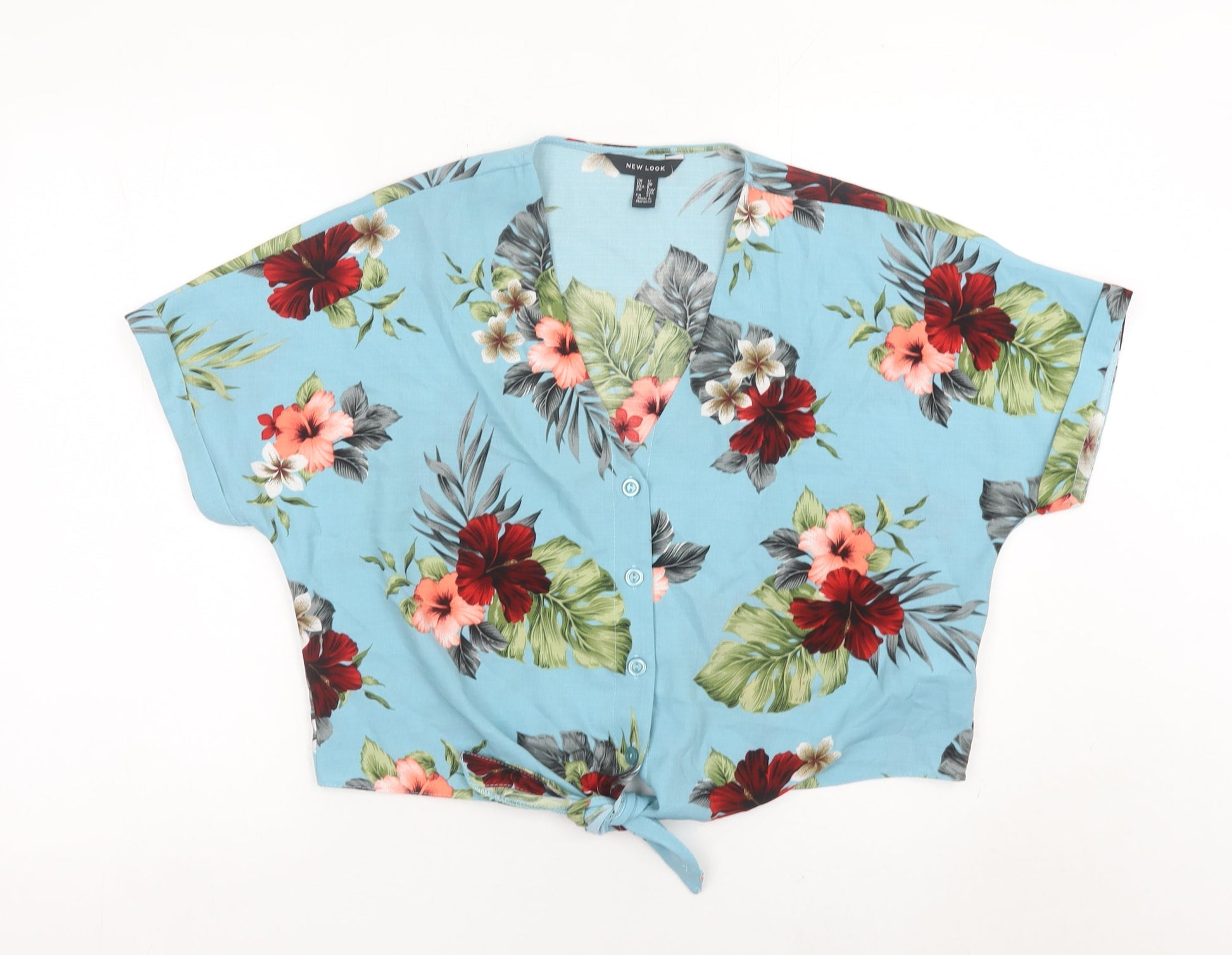 New Look Women’s Blue Floral Cropped Button Blouse UK 12