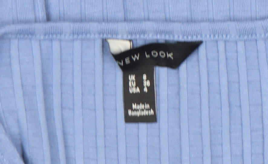 New Look Women’s Blue Ribbed Long Sleeve V-Neck Slim Fit Top Size 8