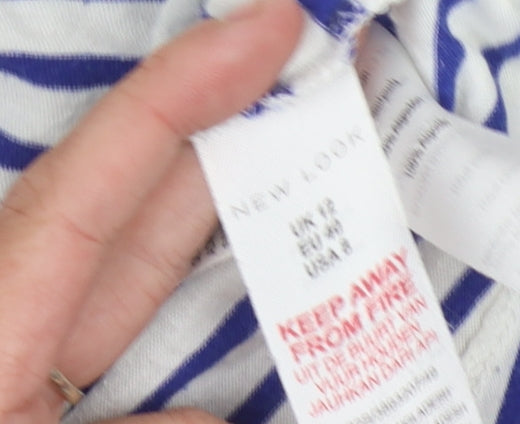 New Look Women’s Blue Striped T-Shirt 3/4 Sleeve Size 12