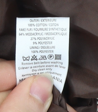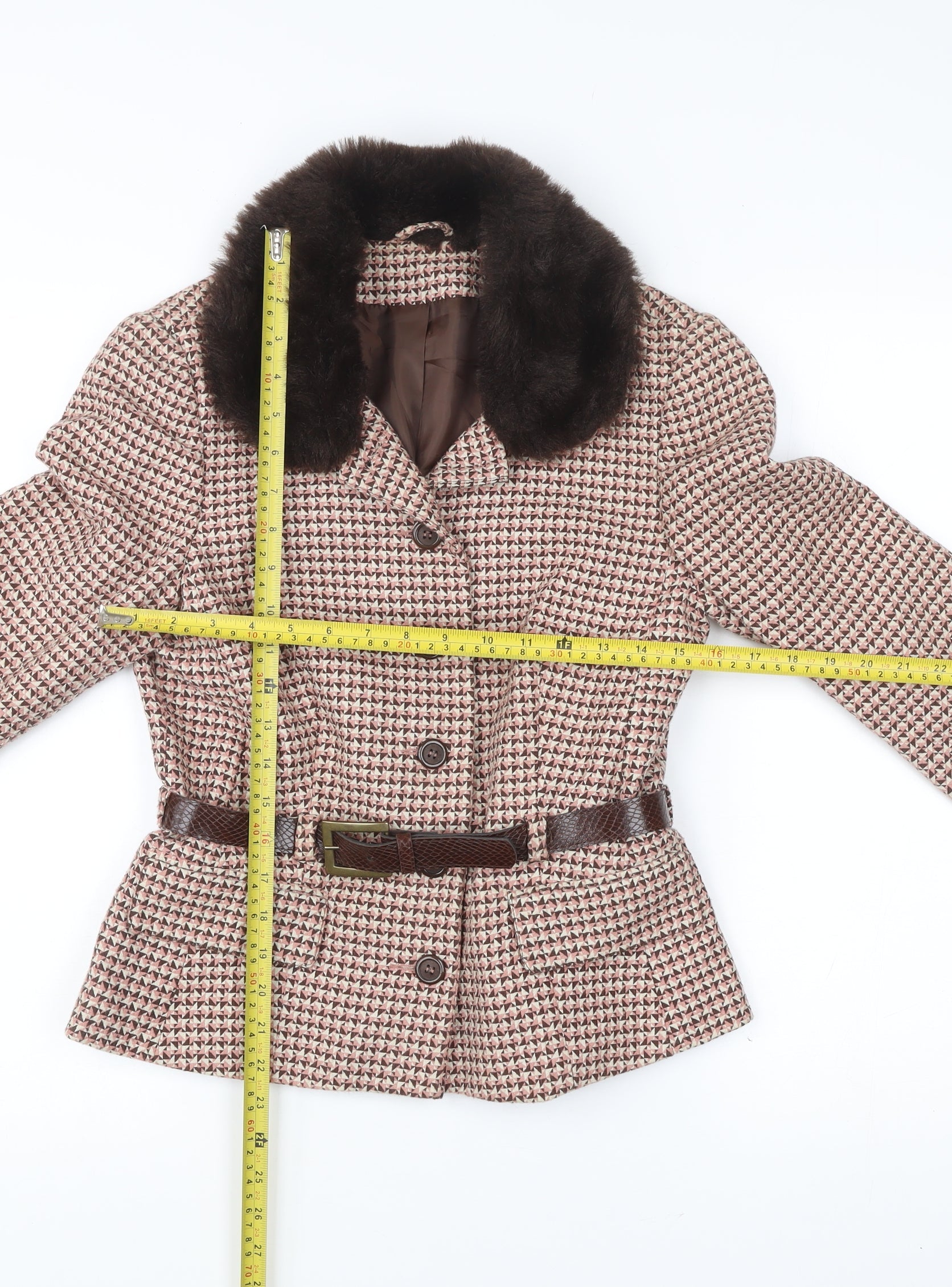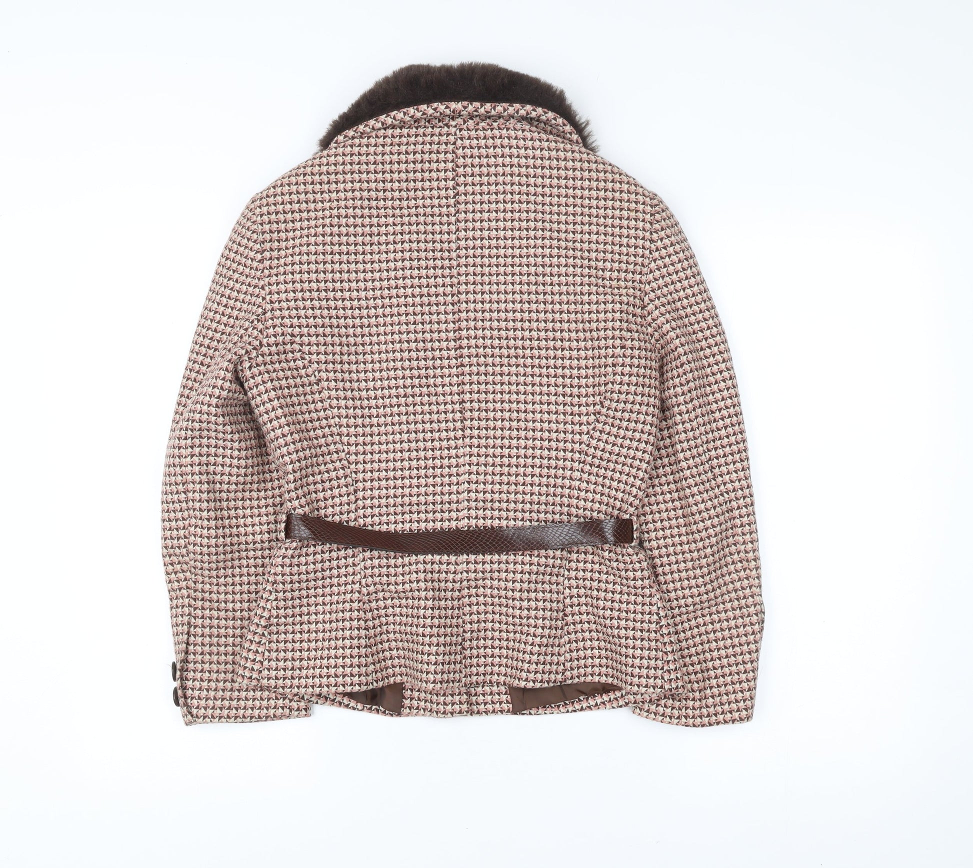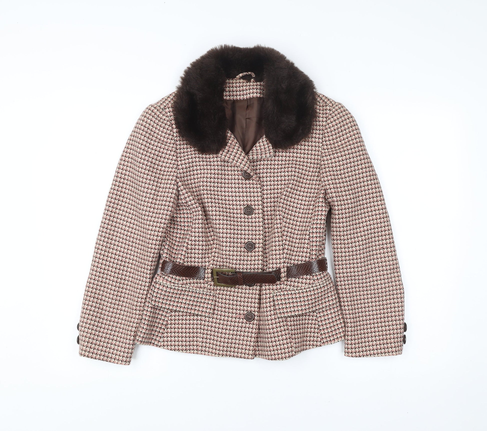 New Look Women’s Brown Houndstooth Belted Faux Fur Collar Coat UK 12