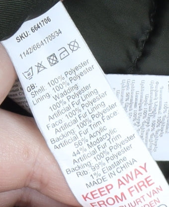 New Look Women’s Green Fur Trim Parka Jacket Size 10