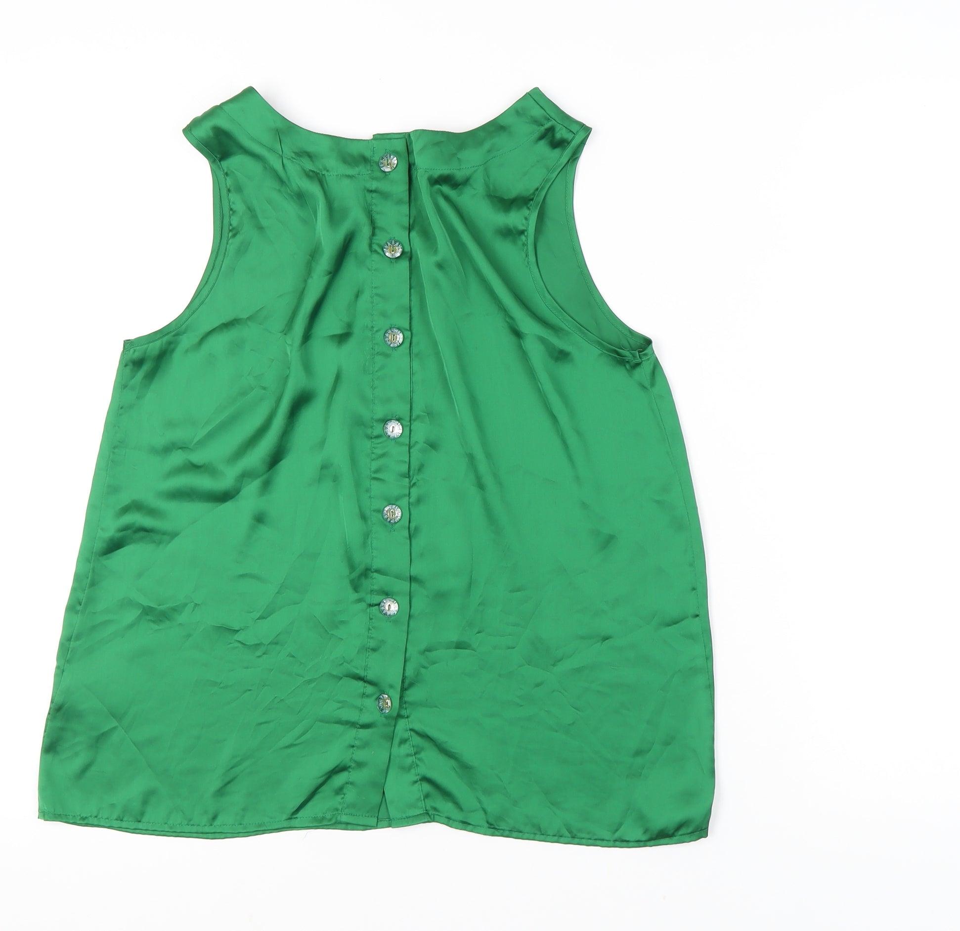 New Look Women’s Green Satin Sleeveless Scoop Neck Blouse Size 14