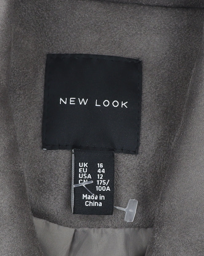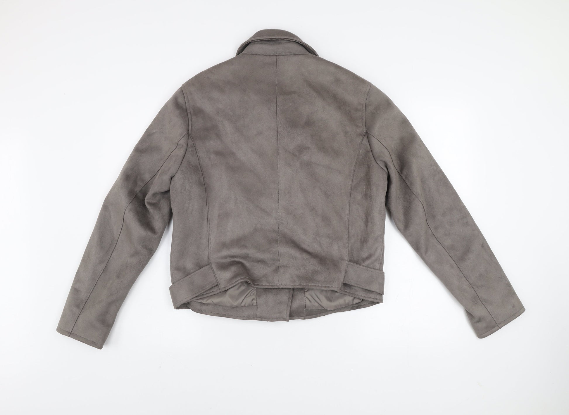 New Look Women’s Grey Faux Suede Biker Jacket Size 16 Belted