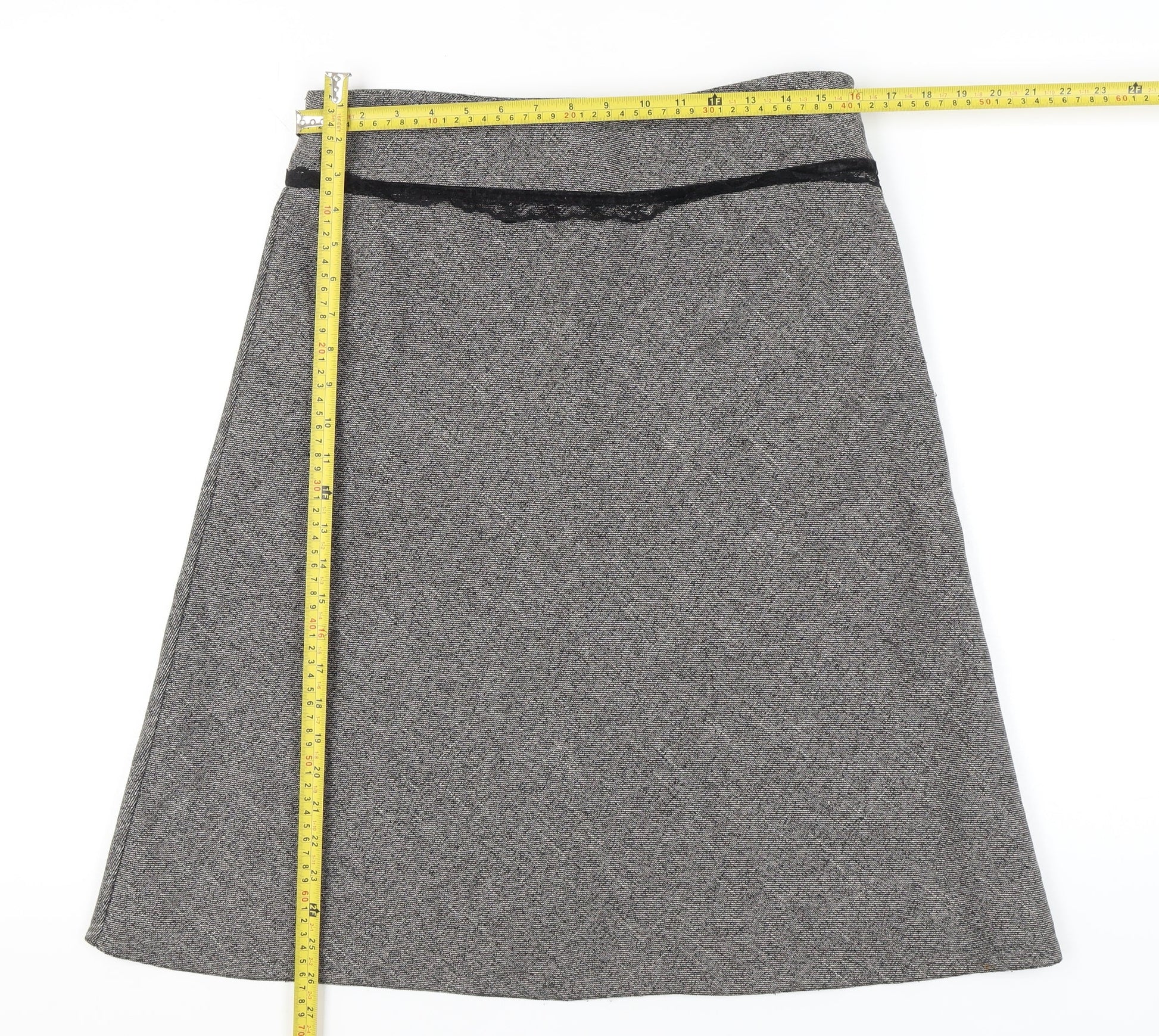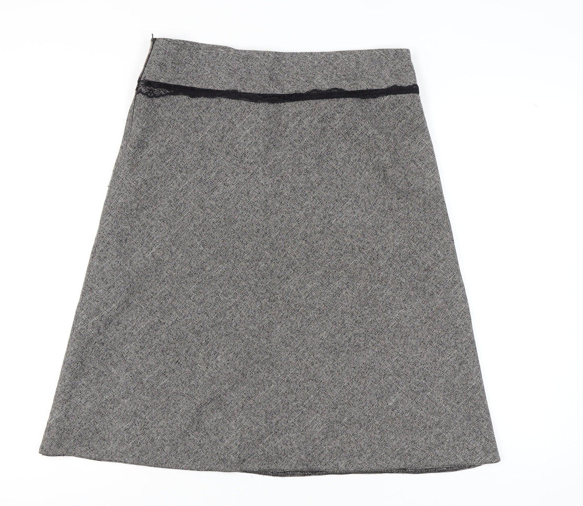 New Look Women’s Grey Herringbone A-Line Knee Length Skirt Size 12